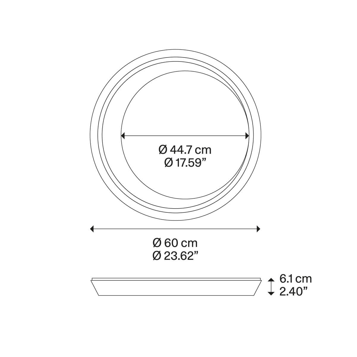 Mit einem Durchmesser von 60 cm fügt sich Tidal mühelos in unterschiedlichste Raumkonzepte ein. Die Deckenleuchte ist in vier matten Farbvarianten erhältlich: Weiß und Schwarz für minimalistische, moderne Interieurs sowie Terra und Champagne für warme, dekorative Akzente. Jede Ausführung bringt ihre eigene Ausstrahlung mit und bereichert den Raum mit stilvoller Eleganz.