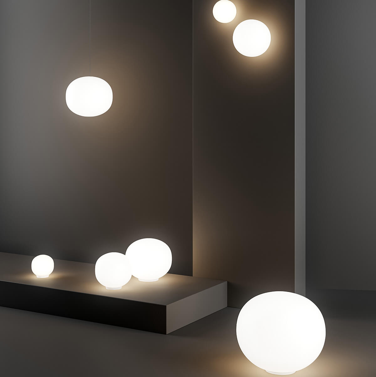 Die Tischleuchte Volum von Lodes ist in vier verschiedenen Größen erhältlich und eignet sich besonders für kleinere Konsolen oder Beistelltische in Wohnräumen. Die verschiedenen Größen können untereinander schön kombiniert werden, um eine passende Akzentbeleuchtung zu erzielen. Das Glas der Leuchten ist mundgeblasen und hat eine leicht glänzende Oberfläche.