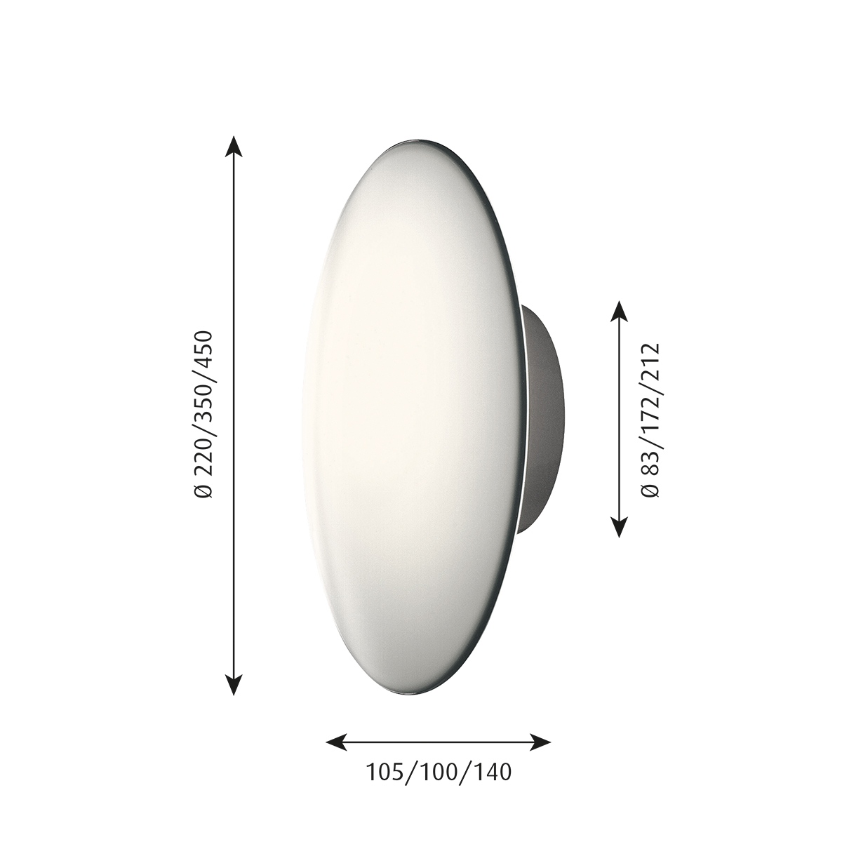 | Material/surface: | Mouth-blown opal glass white, wall base: aluminum white powder-coated |