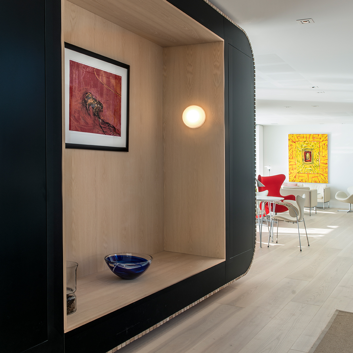 Der Leuchtenschirm der AJ Eklipta LED Wand- und Deckenleuchten besteht aus handgefertigtem, dreischichtigem Opalglas, dessen transparenter Rand einen dekorativen Lichtkreis um die Leuchte erzeugt. Die Helligkeit ist in der Mitte des Glases am stärksten und nimmt zur Außenkante hin sukzessive ab. Maßgefertigte LED-Leuchtmittel mit spezieller Linsenoptik sorgen bei den beiden größeren Versionen der Louis Poulsen AJ Eklipta für eine perfekte Lichtverteilung.
