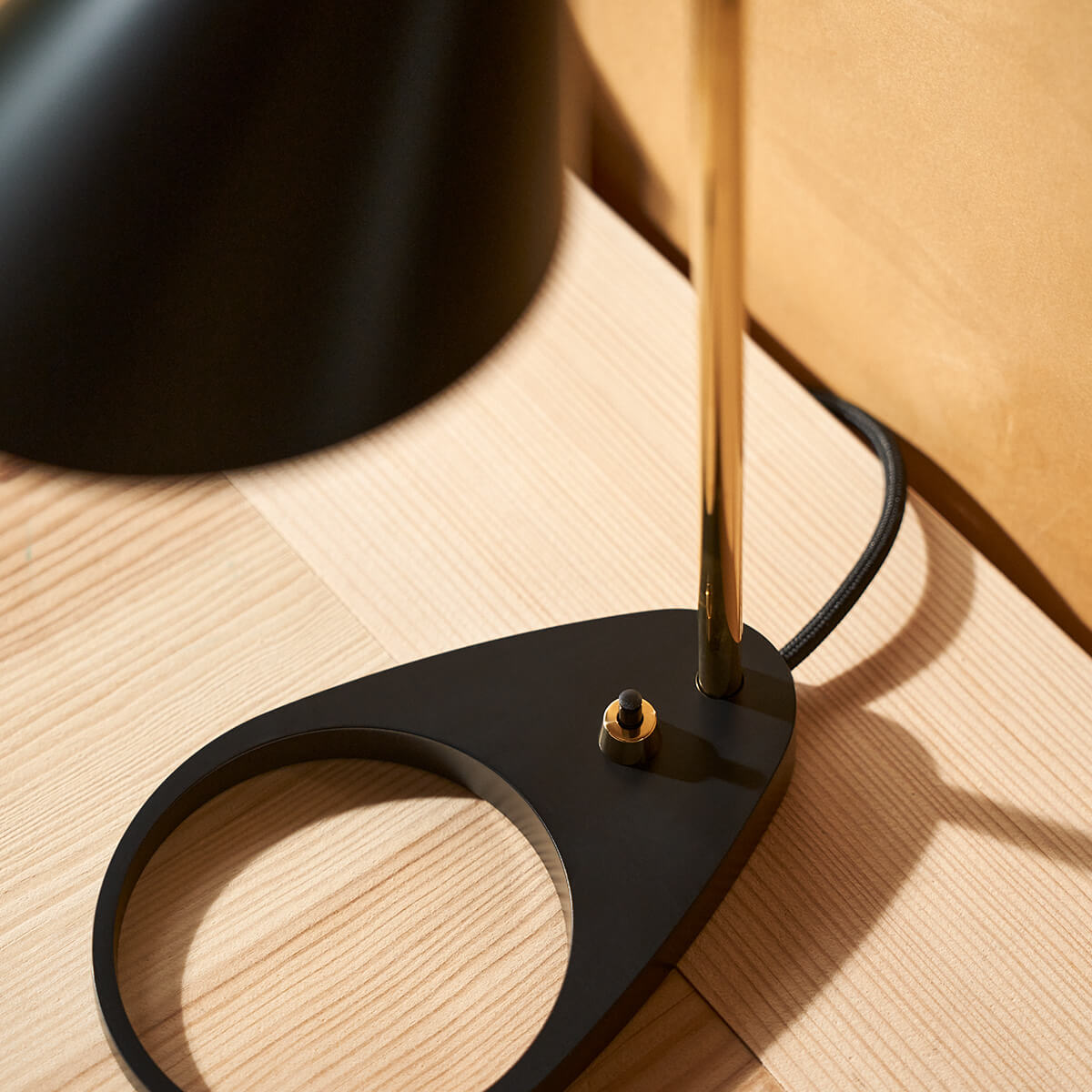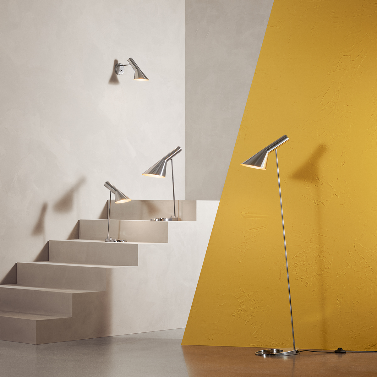 Gefertigt ist die kleine Tischlampe aus gezogenem Stahl. Der Fuß aus Zinkdruckguss verleiht dem Produkt eine stabile Basis. Die matten Farbtöne, in denen die Lampe erhältlich ist – optional kombiniert mit einem Schaft aus poliertem Messing –, verleihen ihr einen zeitgenössischen Touch. Die Version in glänzendem Edelstahl hingegen nimmt Bezug auf die Originalversion, deren Finish in einem reizvollen Kontrast zur hölzernden Wandverkleidung der Hotelräume stand. Mit einer Kabellänge von 2,4 m und einem praktischen Schalter im Leuchtenfuß bietet die AJ Mini auch in Sachen Funktionalität höchste Qualität.