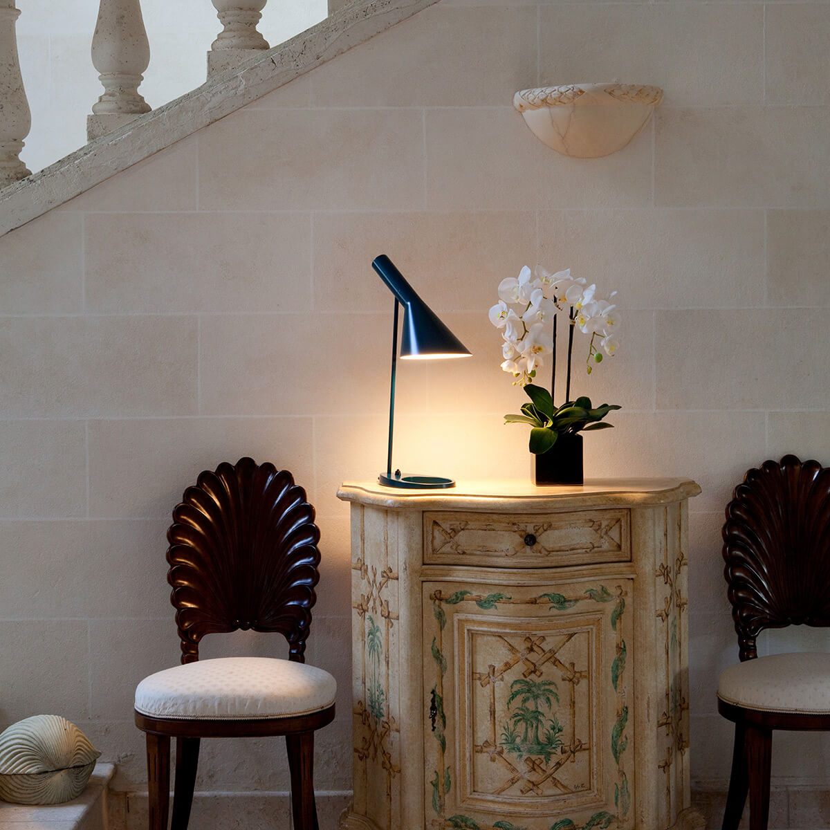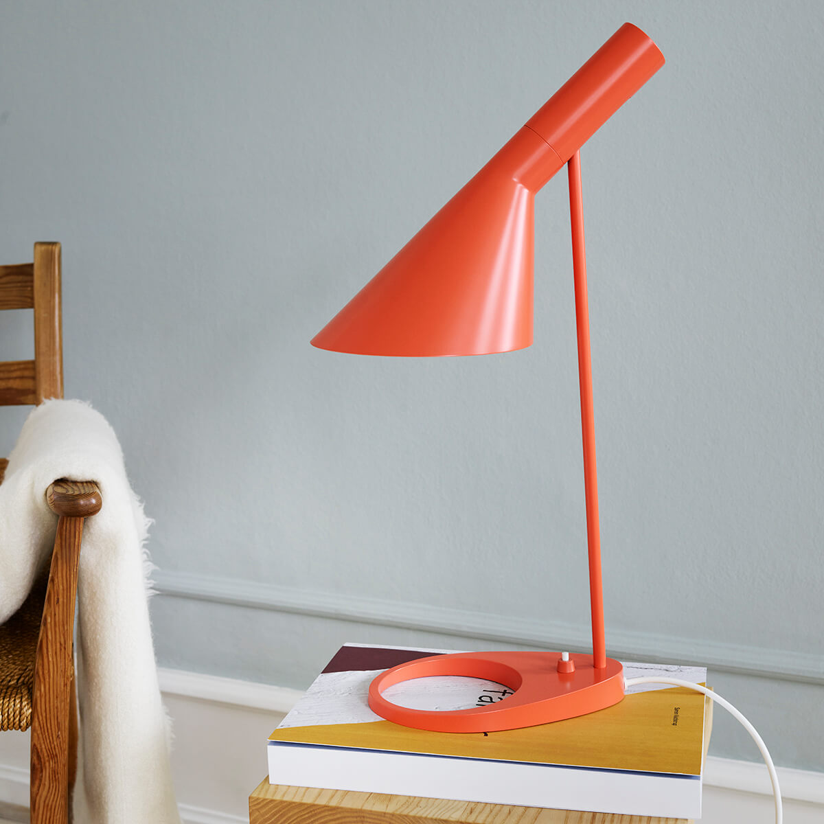 Arne Jacobsen kreierte die Louis Poulsen AJ Tischleuchten als Teil des gestalterischen Gesamtkonzepts des ebenfalls von ihm entworfenen SAS Royal Hotels in Kopenhagen (Radisson Blu). Mit ihrer klaren Form und den ausgewählten Farben dürfen sie als ein gelungenes Beispiel der künstlerischen Konzeption des berühmten Designers und Architekten gelten.