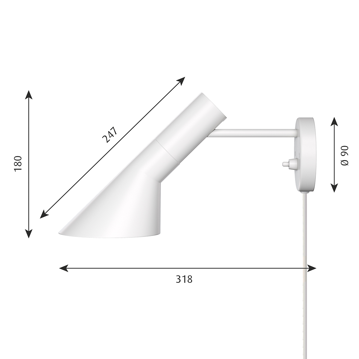Langlebigkeit und Stil garantieren die hochwertige Verarbeitung und das Material, lackierter bzw. polierter Stahl. Die Kabellänge von 2,4 m und der Schalter an der Wanddose bieten eine einfache Handhabung und Flexibilität bei der Installation. Ob einzeln neben einer Kommode oder in paarweiser Anordnung neben dem Bett, die Louis Poulsen AJ Wandleuchte ist eine zeitlose Lösung für eine Vielzahl von Anwendungen und repräsentiert eine beeindruckende Verbindung von Form und Funktion.