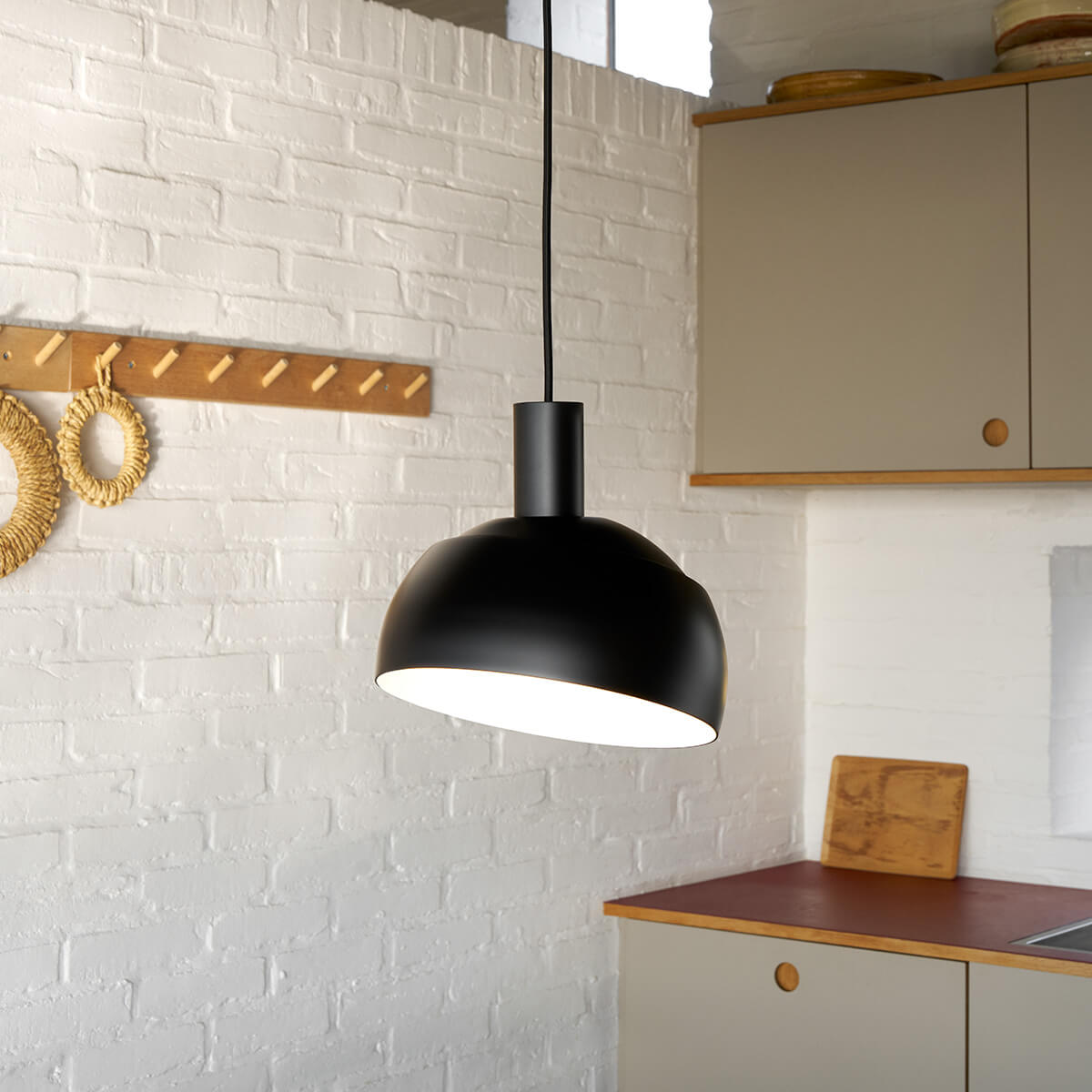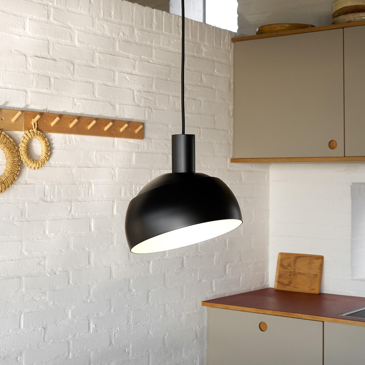 Das Besondere: Der untere Schirm der Pendellampe lässt sich um den oberen drehen und kippen. Auf diese Weise entsteht nicht nur ein variabler Lichtkegel, sondern auch eine veränderte Silhouette. Durch die Öffnung zwischen Gehäuse und Oberteil erstrahlt zudem ein sanftes Licht nach oben, was die Silhouette betont. Der integrierte Diffusor sorgt für angenehmes, blendfreies Licht – ideal für die Beleuchtung von Tischflächen und Theken in Esszimmer, Küche, Bars oder Lobbys.