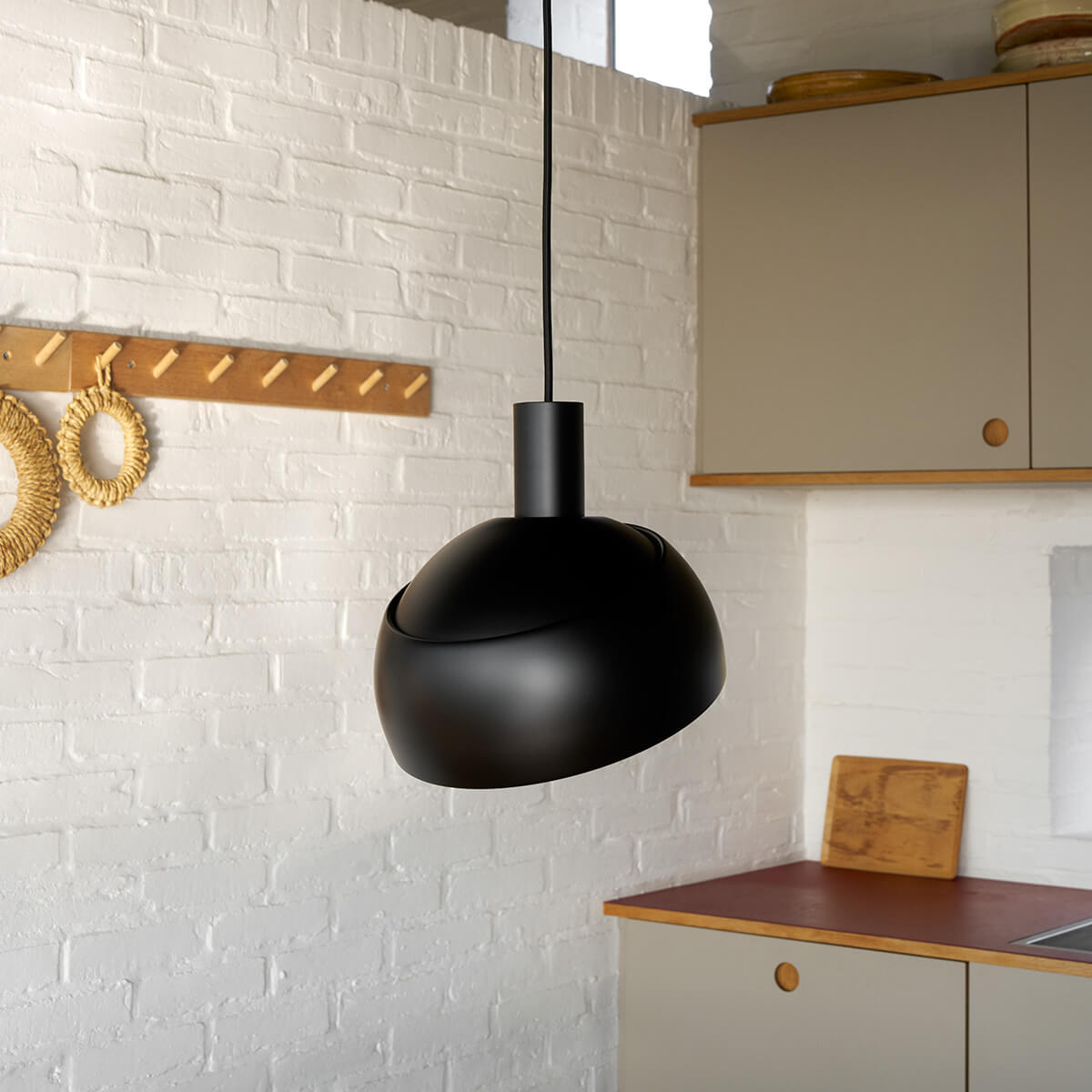 Dank ihrer drehbaren Komponenten und dem eleganten Textilkabel in Schwarz oder Weiß lässt sich die Design-Pendelleuchte nicht nur optisch anpassen, sondern auch funktional perfekt in jedes Interieur einfügen – von modern bis Mid-Century.
