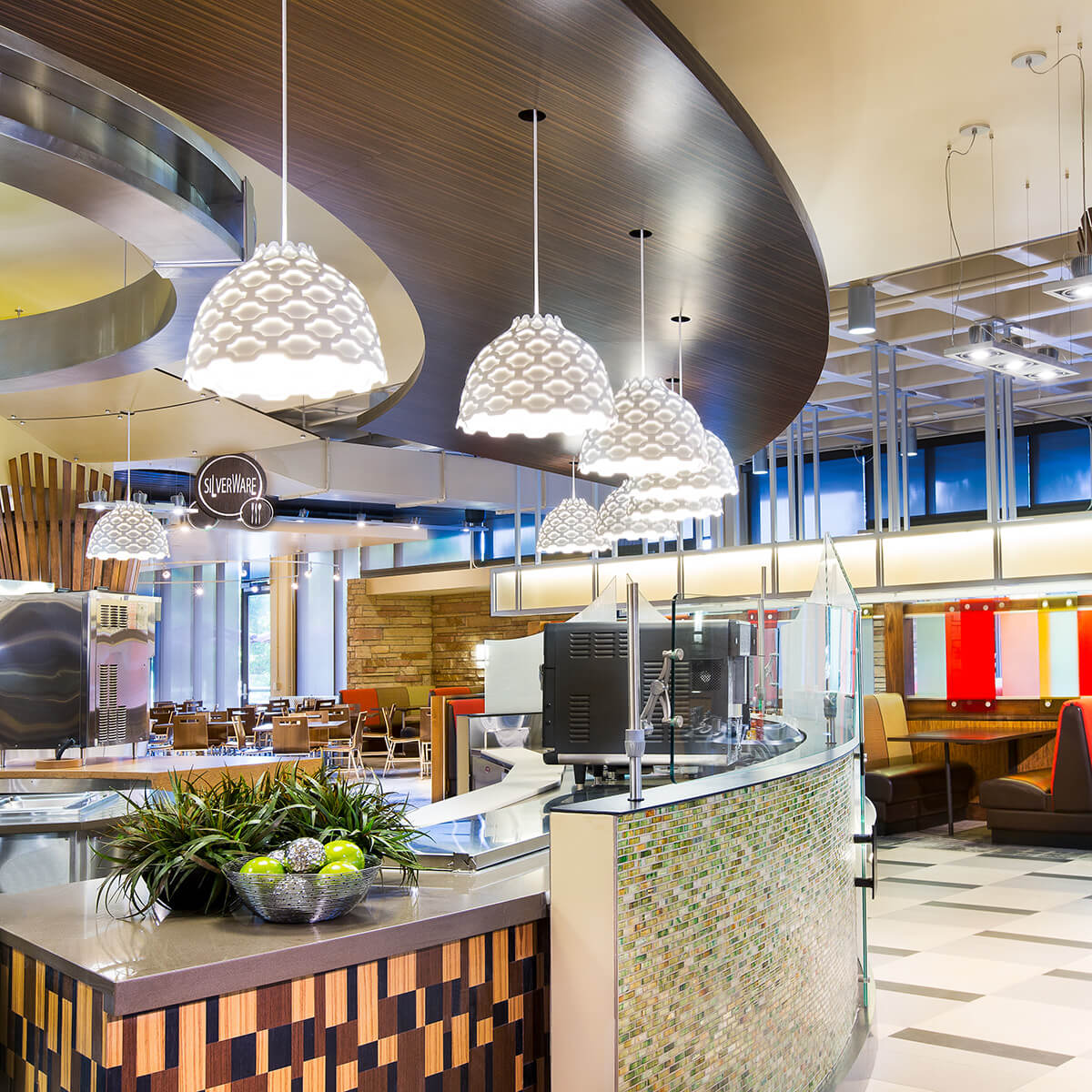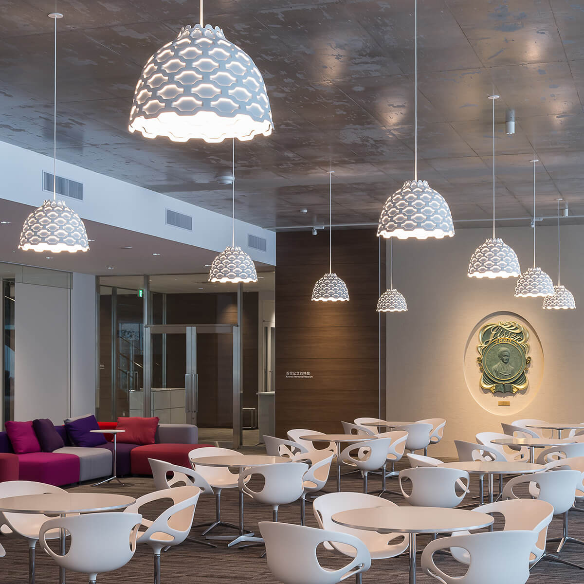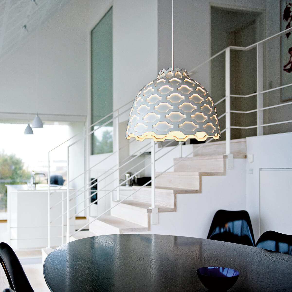 Hier trägt sie mit ihrer dekorativen Erscheinung und der blendfreien Lichtausstrahlung zu einer kreativen und kommunikativen Atmosphäre bei, indem sie ihre Umgebung optimal und ohne störende Schattenbildung erhellt.