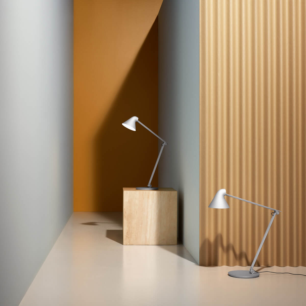 Louis Poulsen NJP LED Tischleuchte, weiß und hellgrau Aluminium