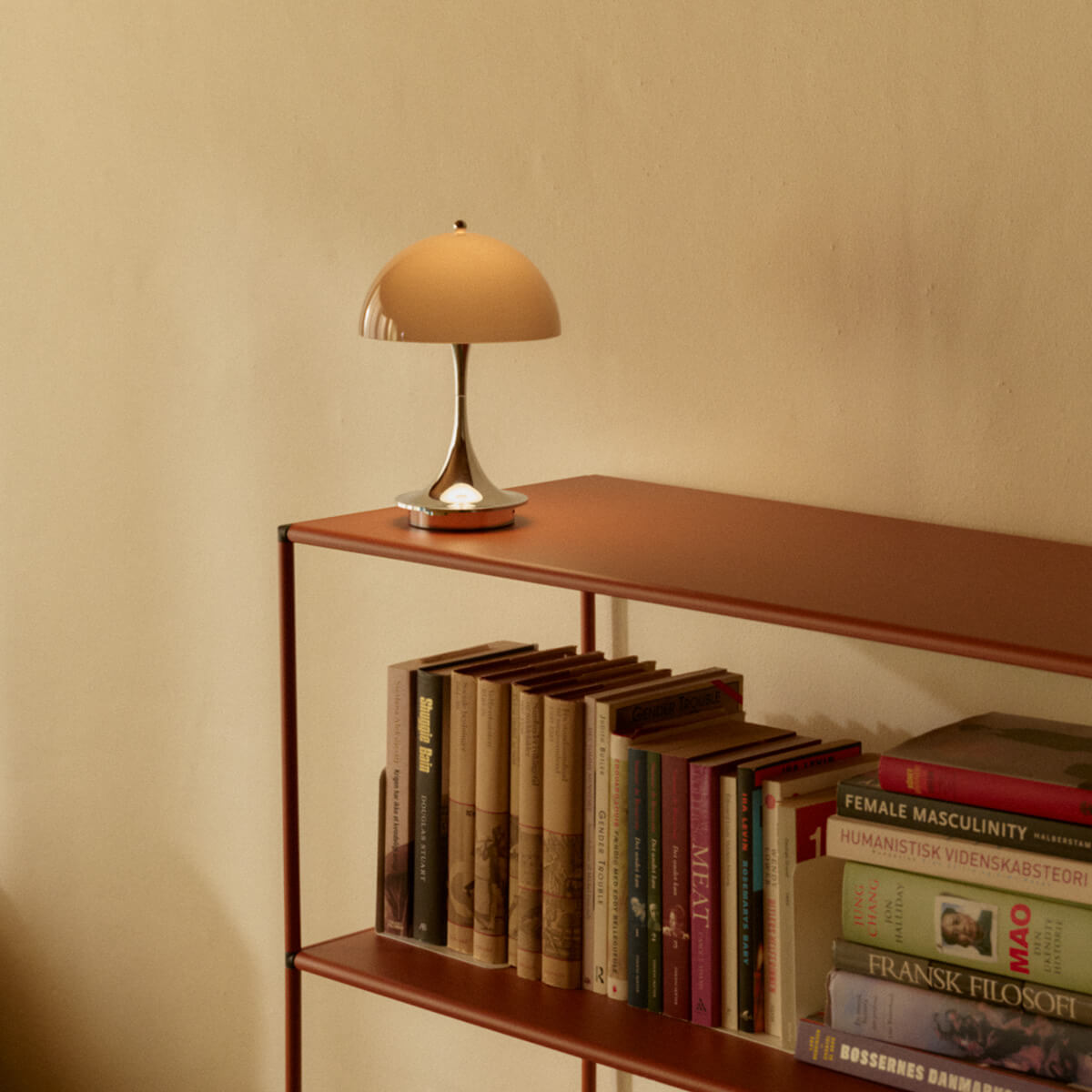 The Panthella 250 Portable is a cordless further development of the famous Panthella table lamp. With a diameter of 25 cm, it is ideal for atmospheric accent lighting in the living area as well as for flexible use outdoors. Whether on the bedside table or sideboard, in the living room, hallway, or on the terrace and balcony – thanks to its IP44 protection rating, the battery-powered lamp is versatile and can be easily moved from indoors to outdoors.
