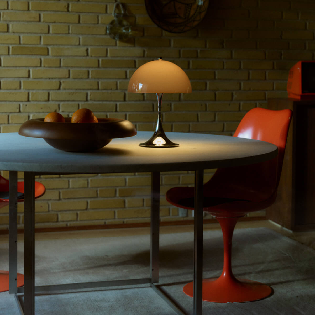 With the Panthella Portable lamp The Originals, Louis Poulsen continues the colorful design history of the 1970s and pays tribute to the extraordinary work of Verner Panton. The special edition features the striking original colors with which Panton first presented the Panthella in 1971 – combined with the characteristic chrome base that underscores the lamp's expressive character. Bright orange and red, deep green and brown, and a timeless blue-gray revive the spirit of the seventies while adding modern accents to any interior.