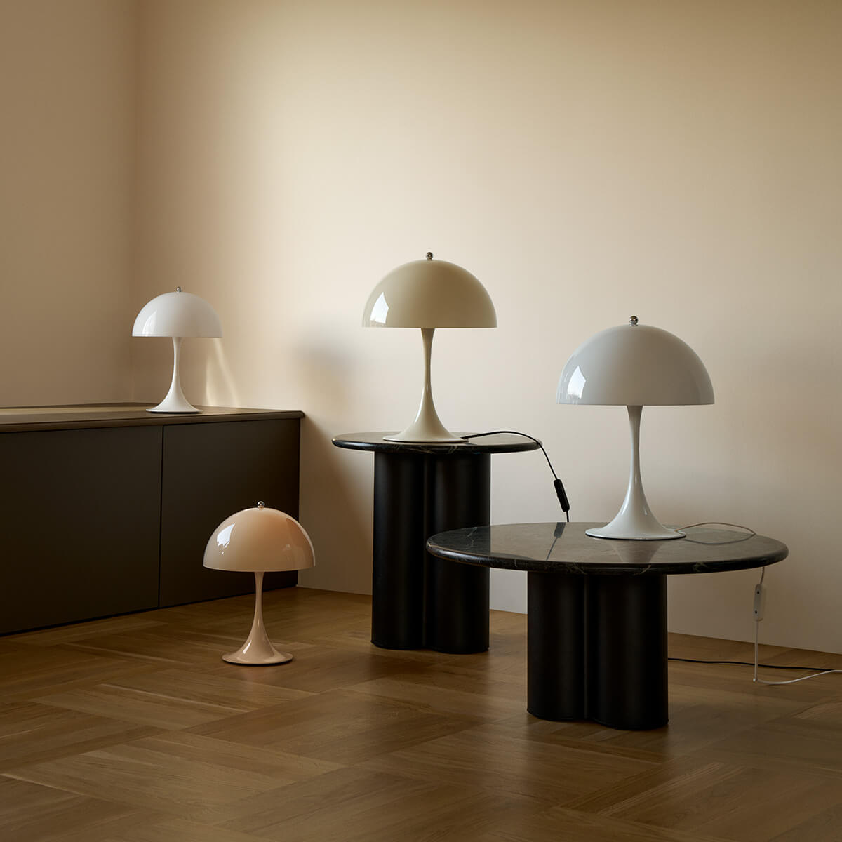 Verner Panton's design goal was to create lamps that appear as independent sculptures in a room – and the Panthella 320 table lamp from Louis Poulsen embodies this with flying colors. Its timeless form, functional design, and sensual lighting effect make it a true design highlight with collector's value.