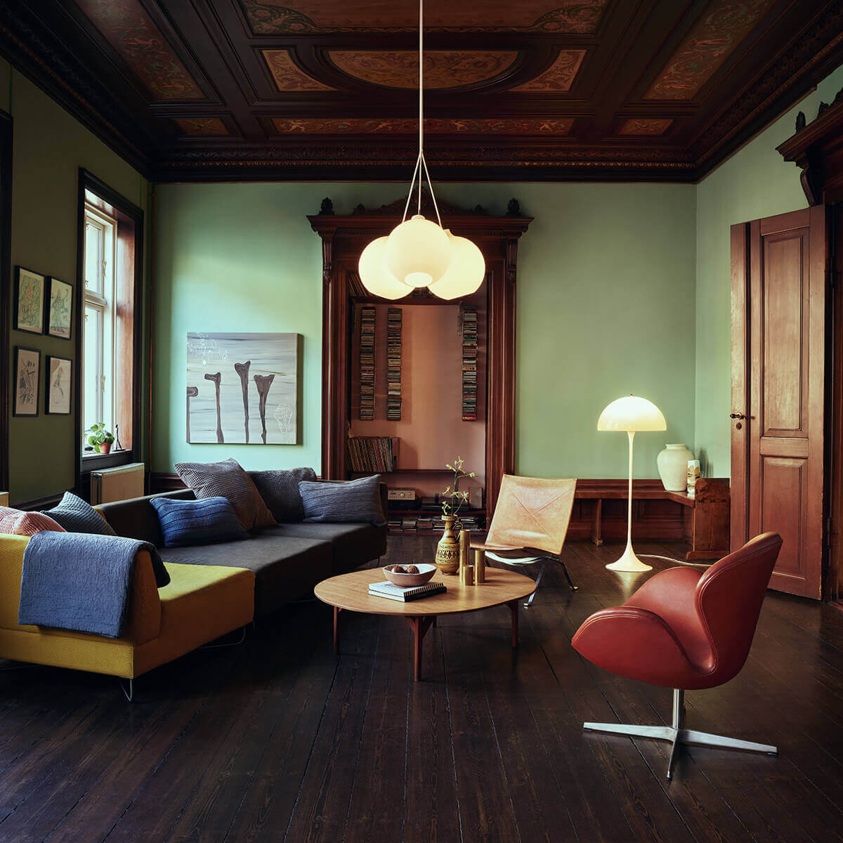 Obwohl das ursprüngliche Design 1971 eingeführt wurde, hat Louis Poulsen es sorgfältig modernisiert, um den heutigen Standards für erstklassigen Lichtkomfort gerecht zu werden. Mit neuen Merkmalen wie einem Schattenschutz-Diffusorschirm und einer Farbbeständigkeit für Metallteile bietet die überarbeitete Panthella Stehleuchte ein Höchstmaß an Komfort und Funktion.