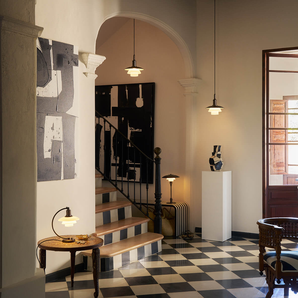 Dank ihres blendfreien Lichts eignet sich die PH 3/3 Pendelleuchte hervorragend über dem Esstisch in Küche und Esszimmer, über einem Beistelltisch im Schlafzimmer, in freier Aufhängung im Flur oder in repräsentativen Bereichen wie Hotel-Lounges und Lobbys. Auch in kleineren Zimmern oder in Räumen mit hohen Decken entfaltet sie ihre volle Wirkung und bringt zeitlose Eleganz in jede Umgebung.