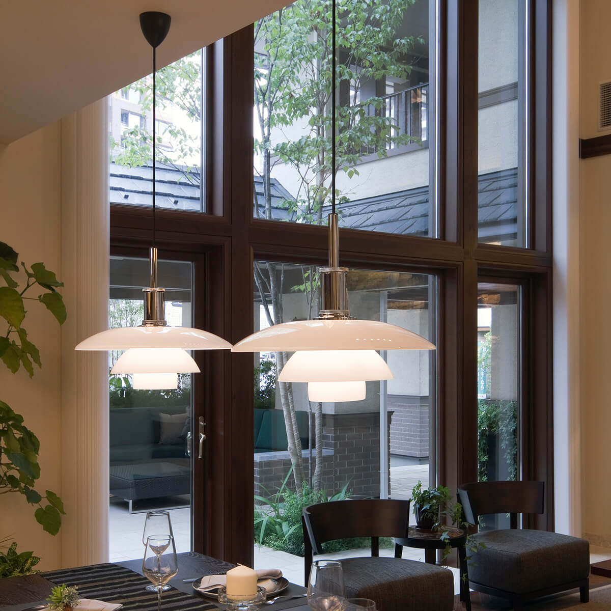 - Schirme aus mundgeblasenem, innen matt sandgestrahltem Opalglas