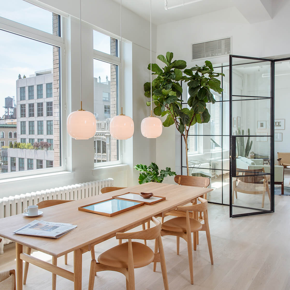 Der dreischichtige Schirm, mittels traditioneller mundgeblasener Glastechnik hergestellt, sorgt für eine gleichmäßige Lichtwirkung und strahlt zugleich ein nach unten gerichtetes, atmosphärisches Licht aus. Ob als stilvoller Blickfang über Esstischen, Theken oder in hohen Räumen – die VL 45 Radiohus fügt sich harmonisch in jede Umgebung ein und kreiert ein warmes, einladendes Ambiente.