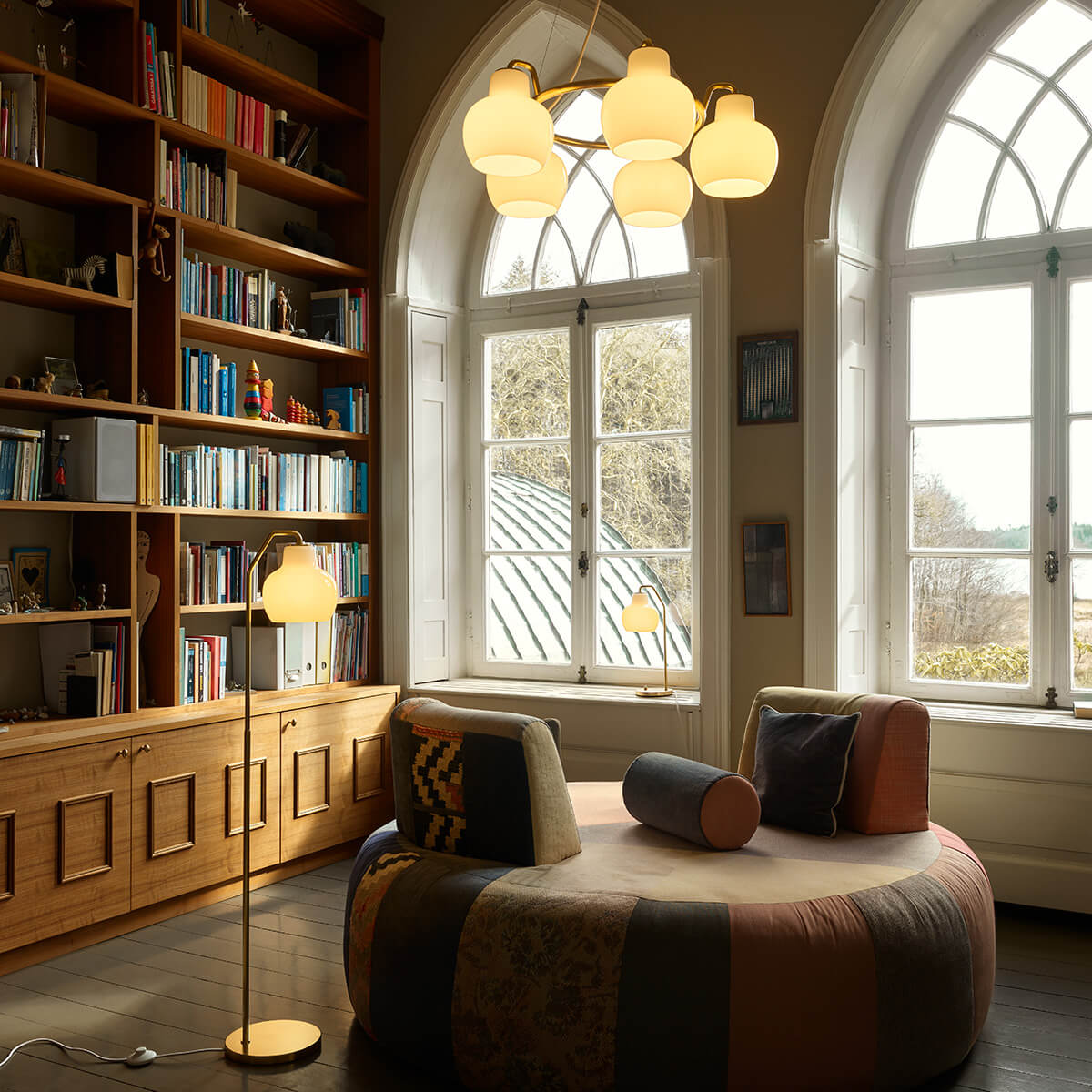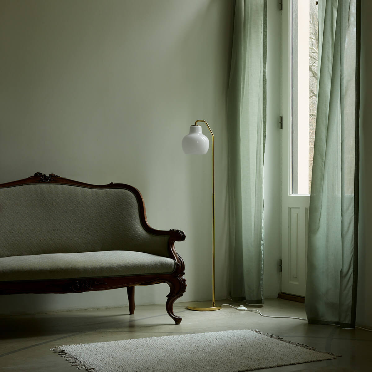 Als Stehlampe eignet sich die VL Ring Crown besonders für Wohnzimmer und Loungebereiche, wo sie neben Sofa oder Sessel als stilvolle Leseleuchte fungiert. Auch im Schlafzimmer oder in repräsentativen Innenräumen setzt sie elegante Akzente. Das ausstrahlende Licht wird durch das opalweiße Glas sanft im Raum verteilt und schafft eine atmosphärische, behagliche Umgebung.