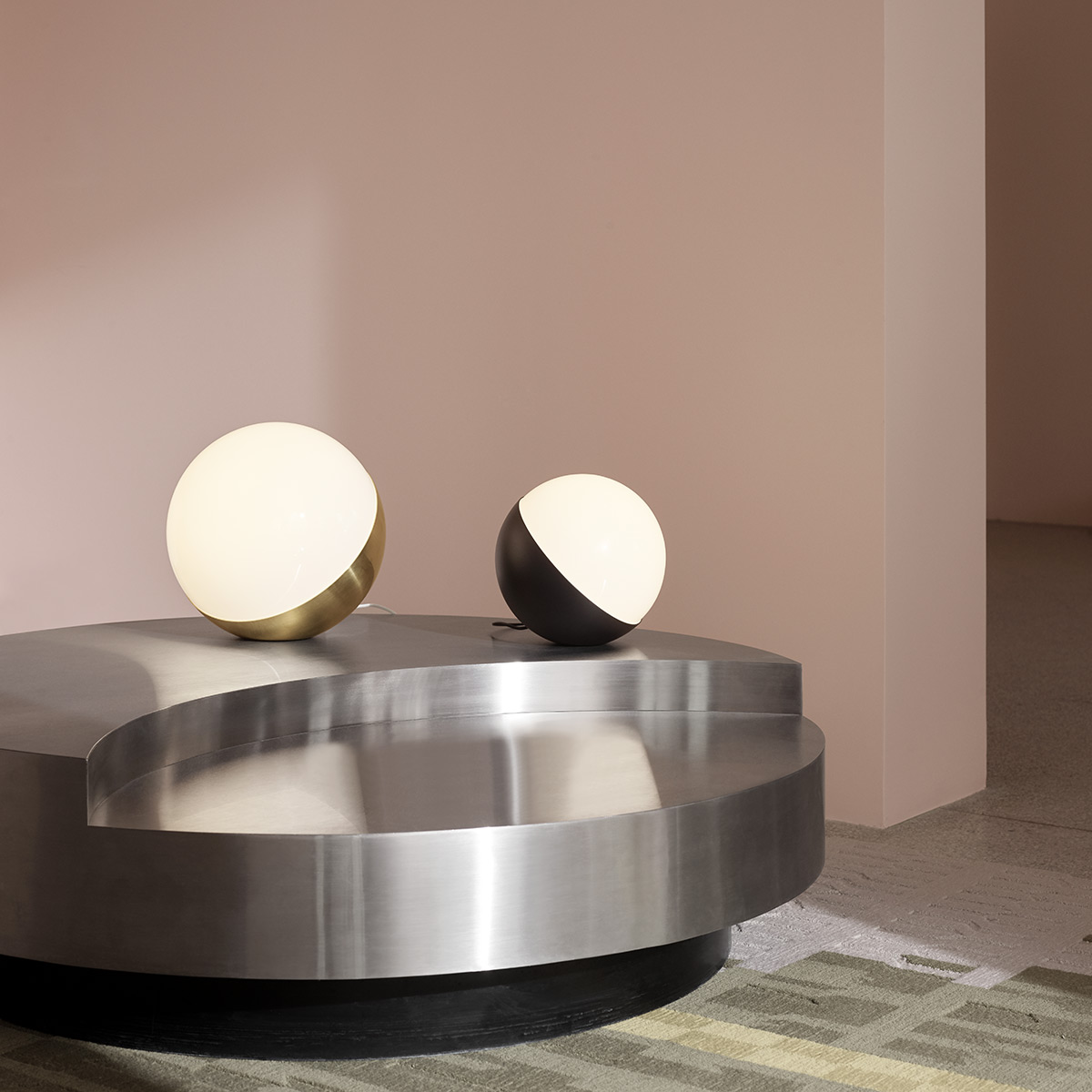 Louis Poulsen VL Studio Tisch- / Stehleuchte, Ø: 32 cm, Messing gebürstet, und VL Studio Tisch- / Stehleuchte, Ø: 25 cm, schwarz matt
