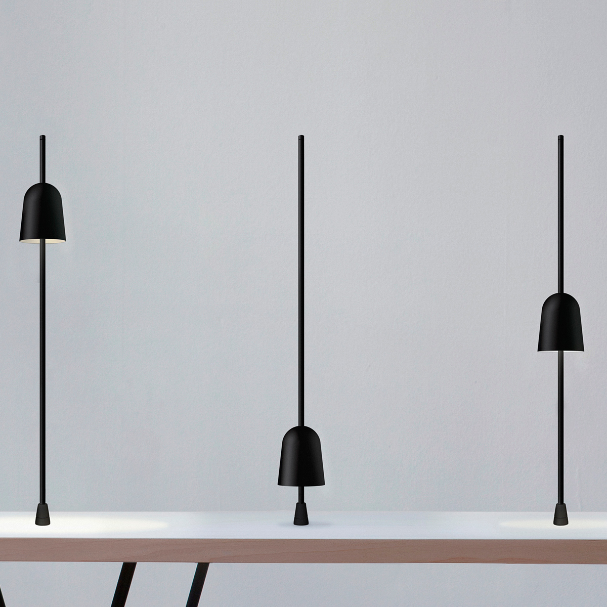 - Ein- und Ausschalten der Tischleuchte erfolgt durch Hoch- und Hinabschieben des Leuchtenschirms