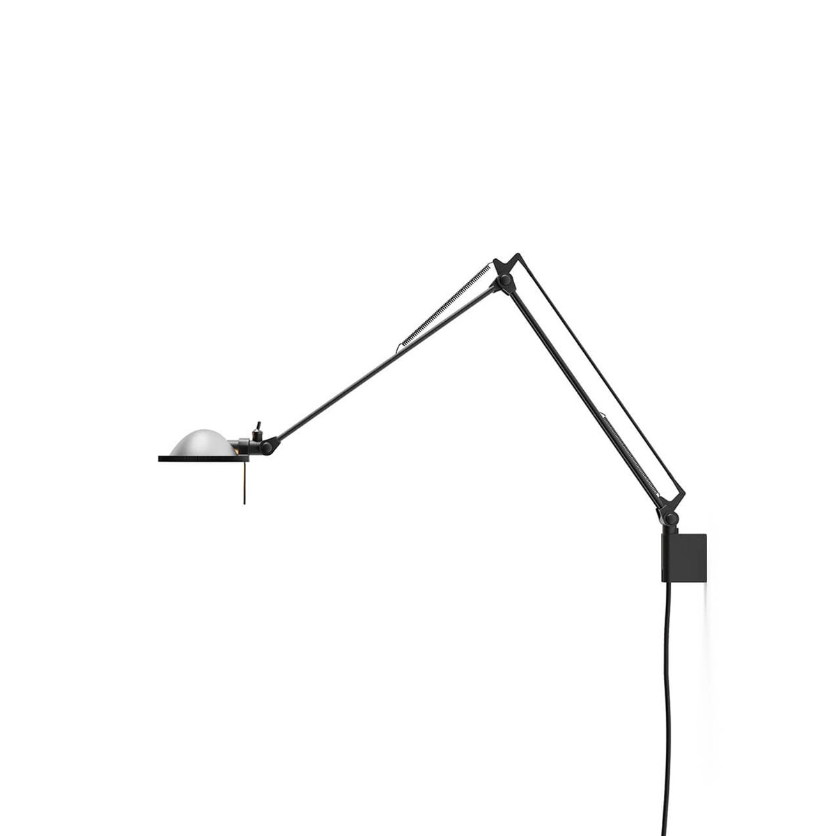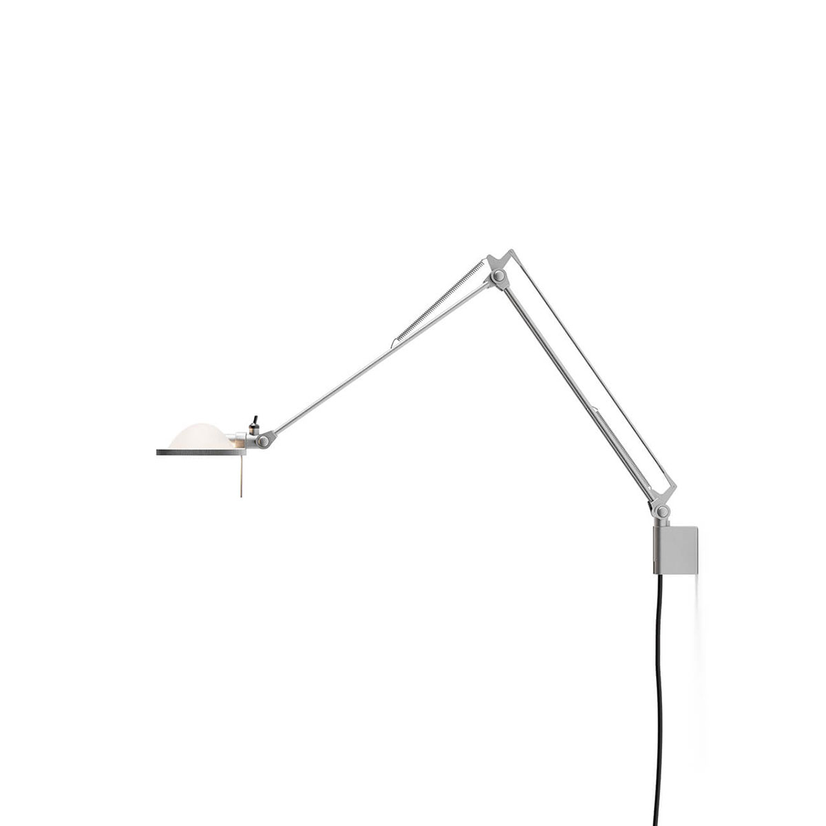 Ohne viel Raum zu beanspruchen, sorgt die Leuchte für ein fokussiertes, direktes Licht, das sich dank der schwenkbaren Arme und des um 360° drehbaren Leuchtenkopfes den individuellen Bedürfnissen entsprechend ausrichten lässt.