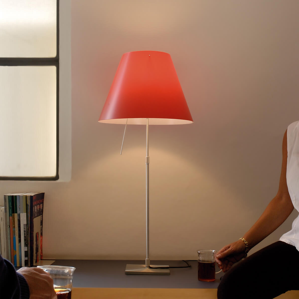 Die unzähligen Farben, in denen die Schirme der Costanza Leuchtenserie erhältlich sind, machen es möglich, die Tischleuchte in ihrer Ausdruckskraft zu variieren und dem Innenraum eine persönliche Note zu verleihen.