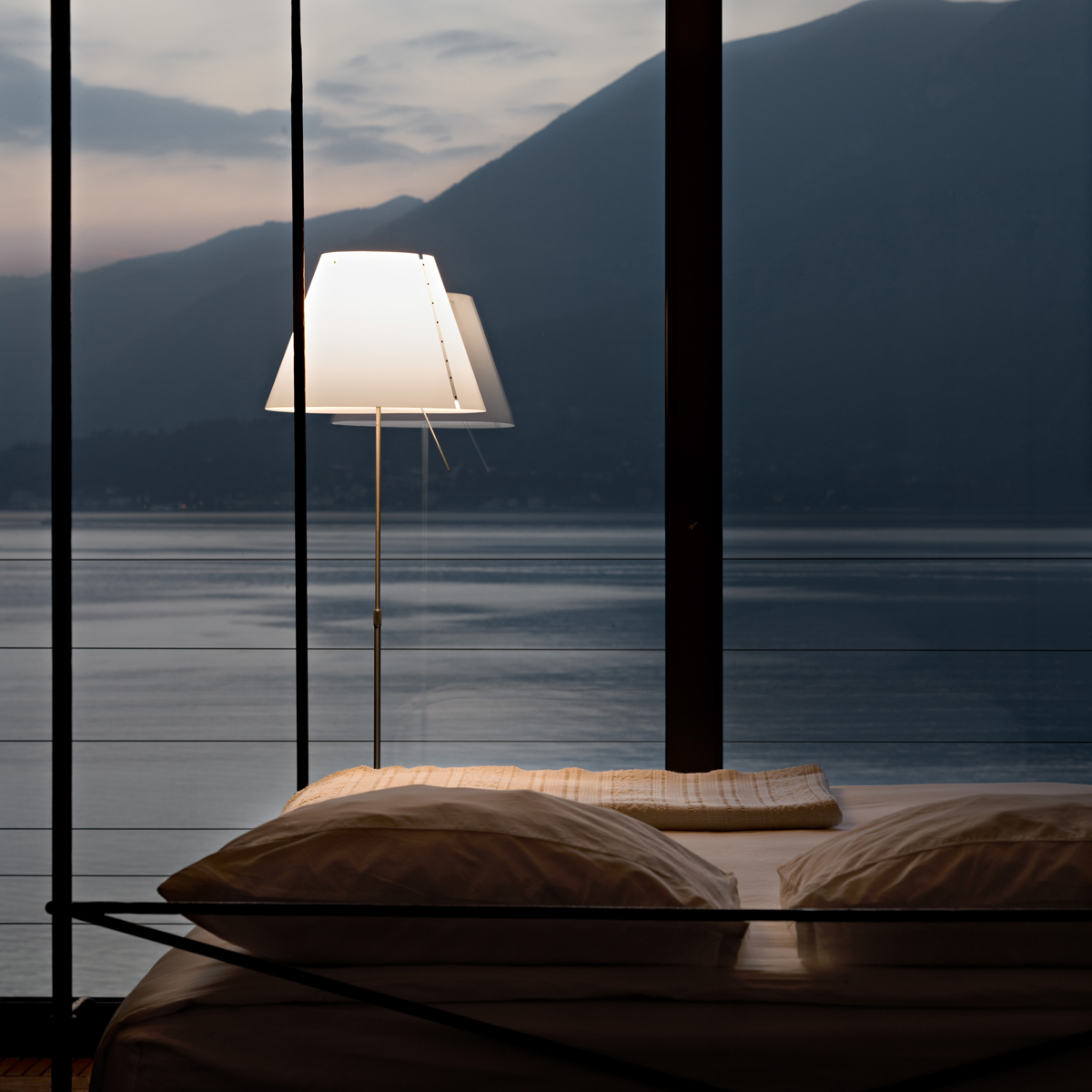 Besondere Funktionalität erhält die Luceplan Costanza Terra Stehleuchte aufgrund ihres höhenverstellbaren Teleskopfußes. Hierdurch kann der Leuchtenschirm auf die stets richtige Höhe gebracht werden. Gilt es etwa die Lektüre zu erhellen, schieben Sie den Leuchtenschirm einfach nach unten. Für ein allgemeineres Licht kann der Schirm wieder nach oben geführt werden.