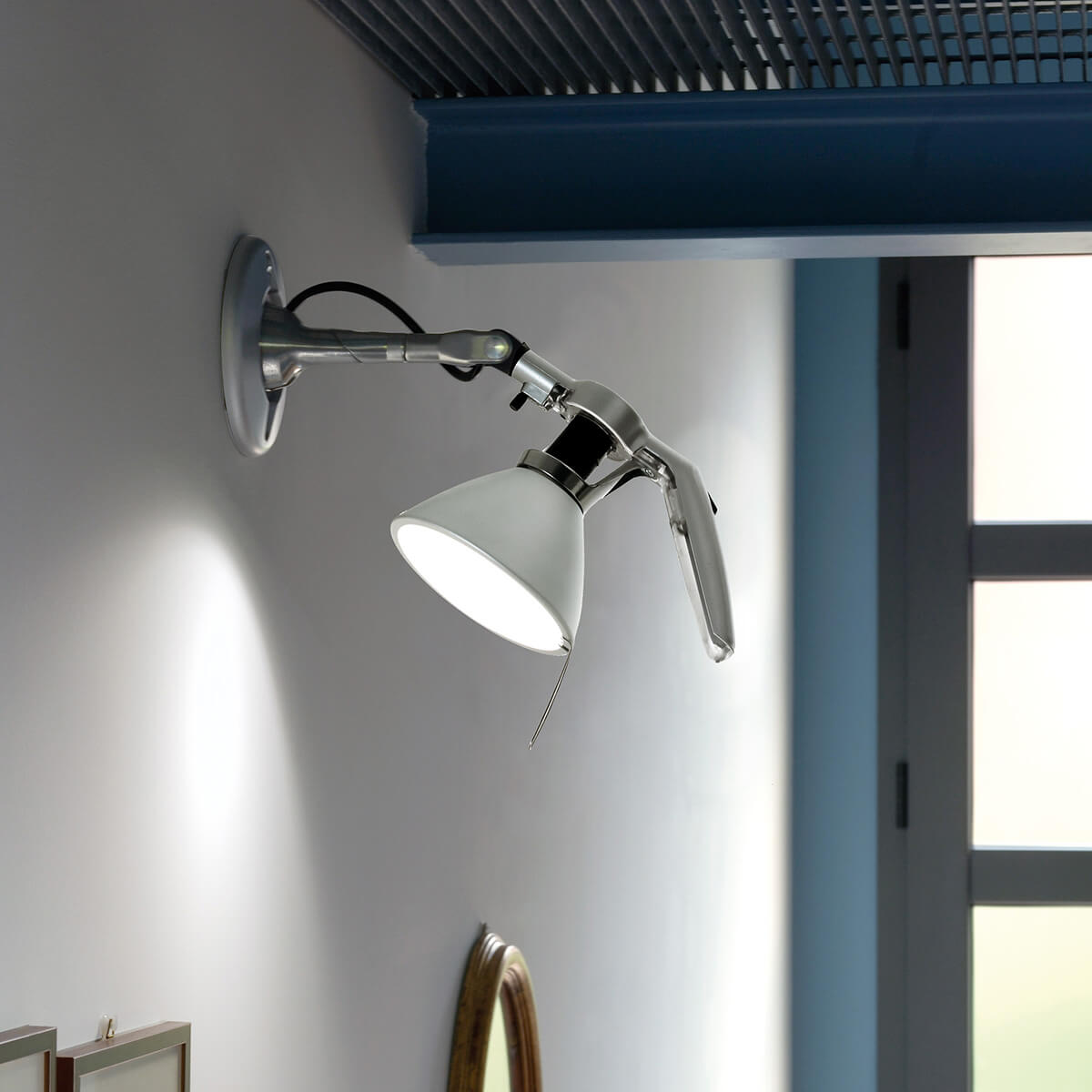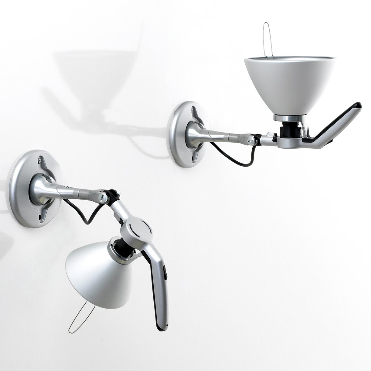 Letzteres wird durch den beweglichen Kopf und den kippbaren Leuchtenarm ermöglicht, wodurch sich die Lichtquelle der Fortebraccio Spot in eine stets andersartige Position bringen lässt. Der nahe dem Diffusor befindliche Griff – ein Charakteristikum der Luceplan Fortebraccio Leuchtenserie – macht es dem Benutzer leicht, die Leuchte bequem und einfach zu manövrieren.