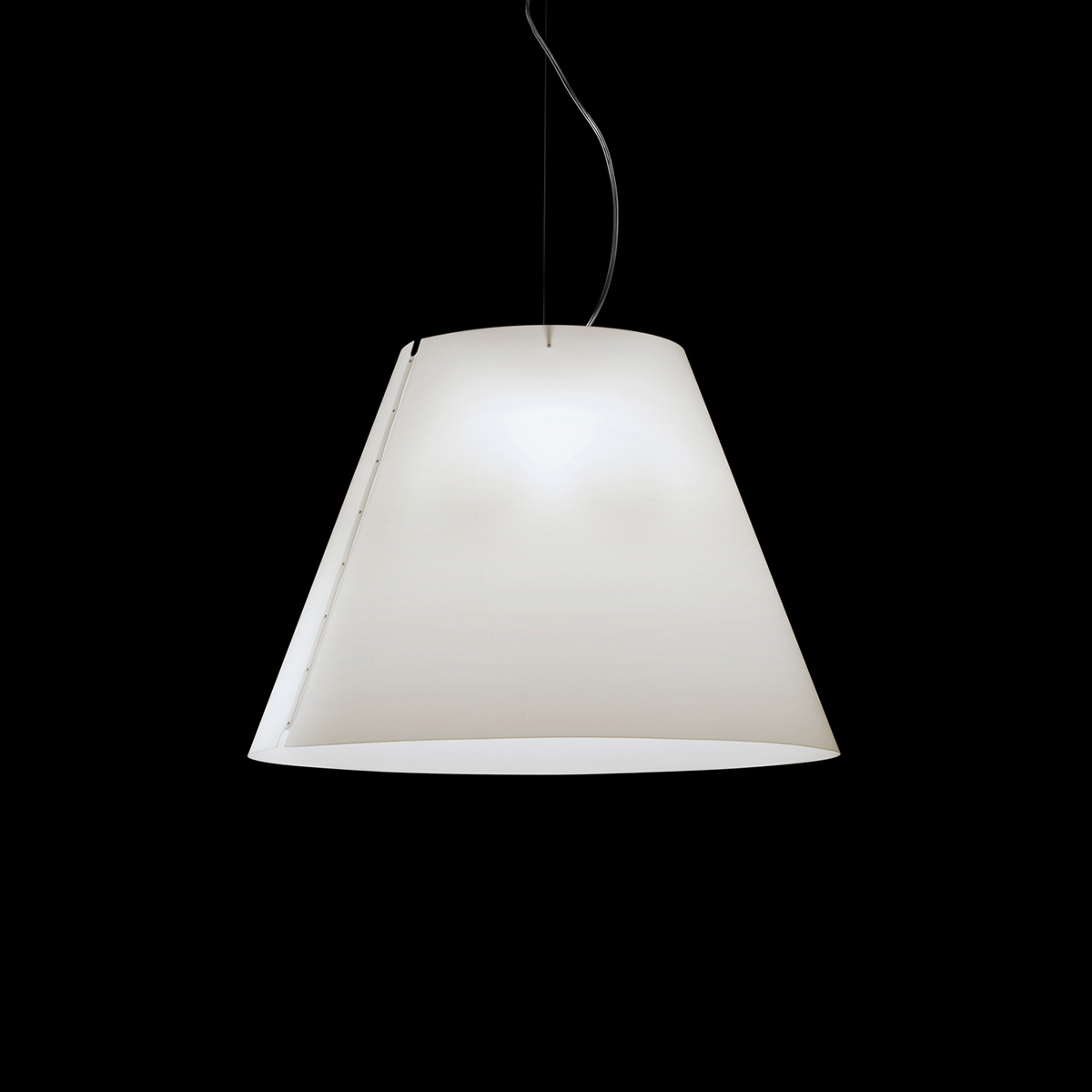 Obgleich von maximaler Dimension, wirkt die Luceplan Grande Costanza Sospensione ausgewogen und leicht. Hierzu trägt nicht nur die klare Formensprache bei, sondern auch das Material des Leuchtenschirms: Aus widerstandsfähigem Polycarbonat gefertigt, ist er von nur geringem Gewicht.
