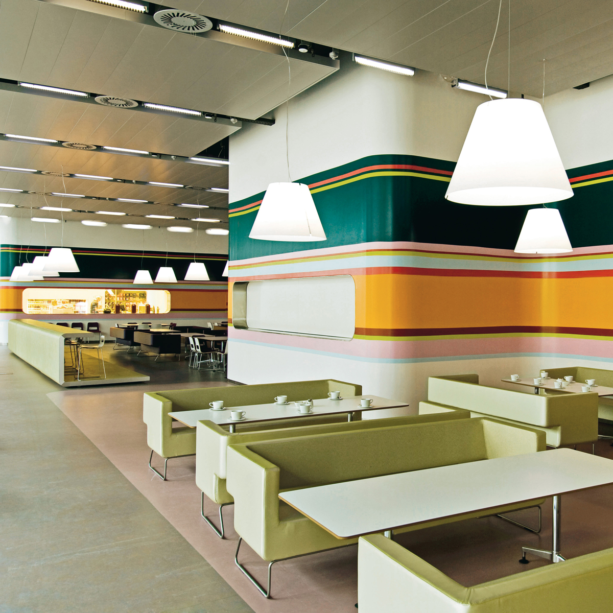 Hierdurch eignet sich die Grande Costanza Sospensione vor allem für großflächige Raumbereiche, etwa in Restaurants, Wartesälen oder einem größeren Wohnzimmer, wo sie ein behagliches, einhüllendes und diffus gestreutes Licht erzeugt.