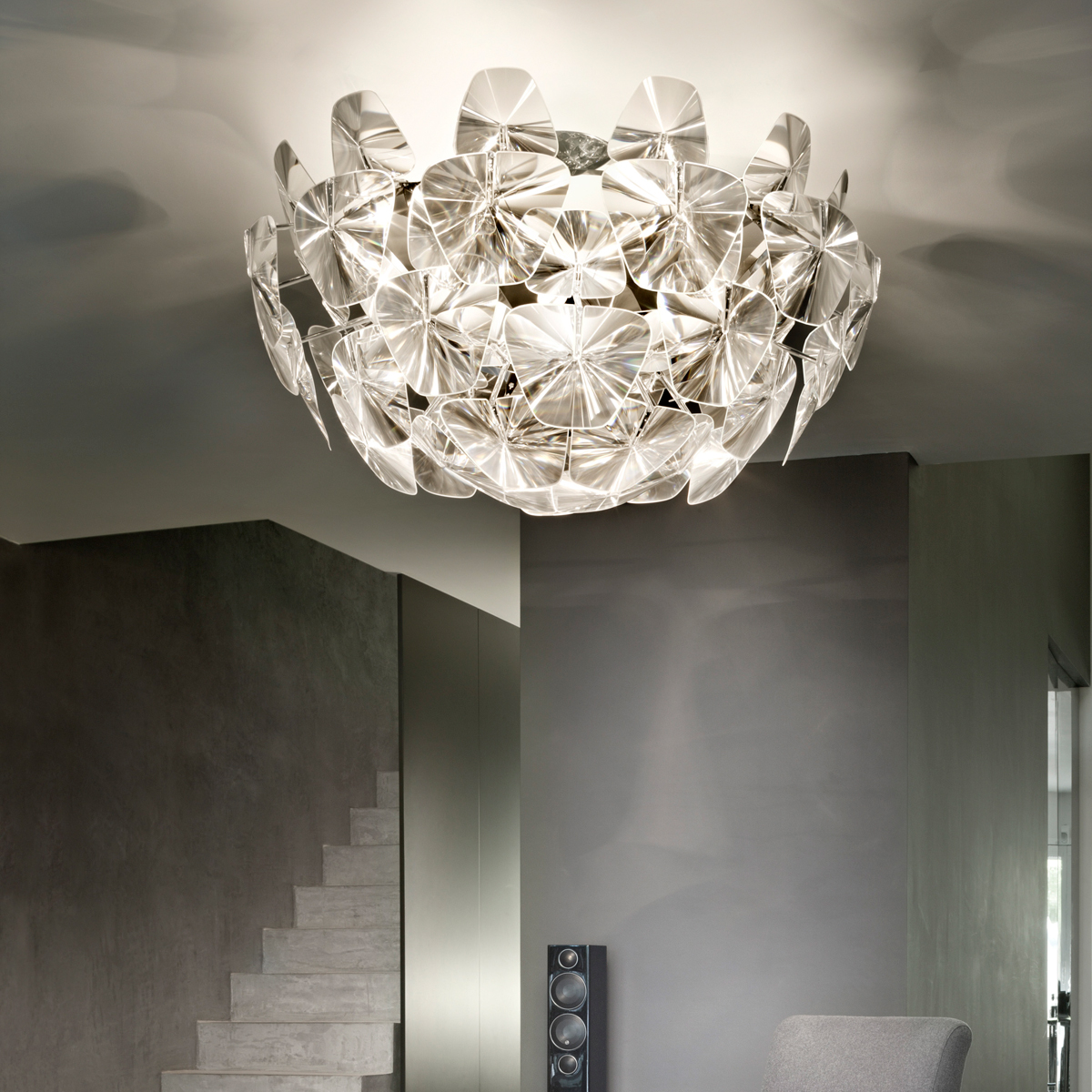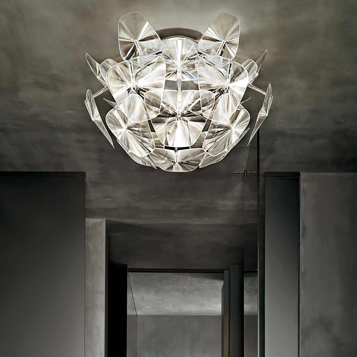 Die hierdurch entstehenden Lichtreflexe erzeugen eine prunkvolle und brillante Atmosphäre. Sie überziehen die Luceplan Hope Deckenleuchte mit strahlenden Lichteffekten, wie sie auch ihren Namensgeber, den berühmten Hope-Diamant, auszeichnen. Dies machtdie Leuchte zu einem eindrucksvollen Lichtobjekt, egal ob im Flur daheim oder in Hotels, Lounges und Versammlungsräumen.