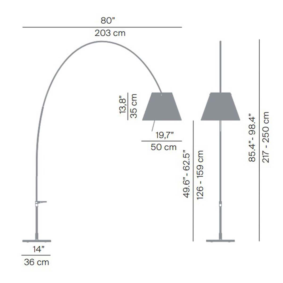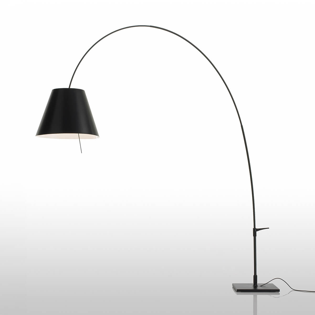 Das geringe Gewicht der filigranen Struktur und der praktische Griff nahe der Basis machen es hierbei ein Leichtes, die Position der Lady Costanza Terra nach Belieben zu verändern. Der höhenverstellbare Teleskopstiel, der sich an der Basis um bis zu 360° drehen lässt, verleiht der Bogenleuchte ein Höchstmaß an Flexibilität und erlaubt es, den Leuchtenschirm in die stets günstigste Position zu manövrieren.