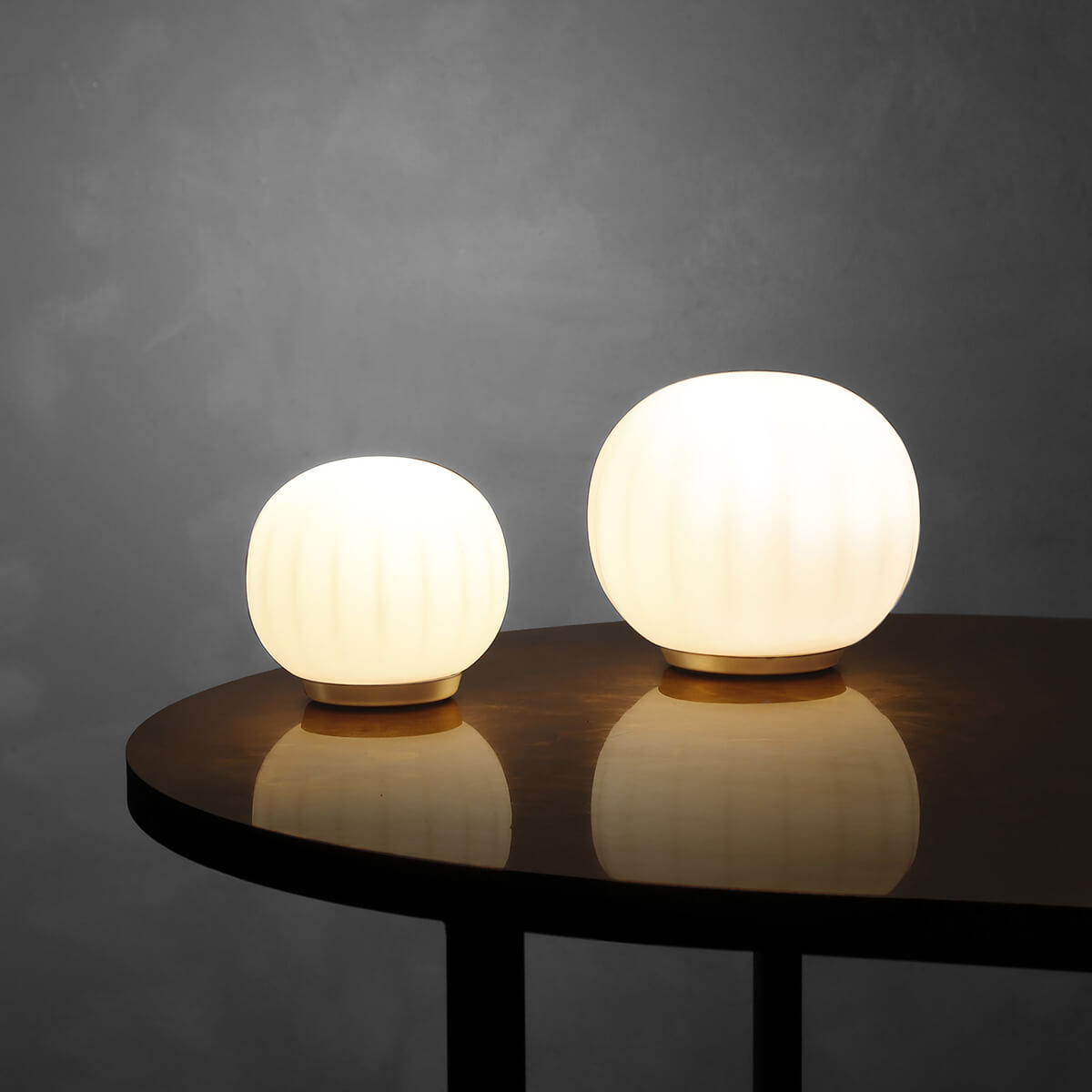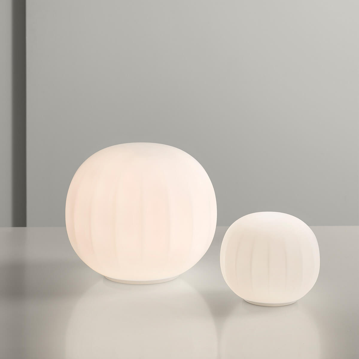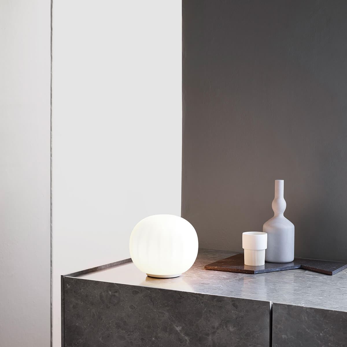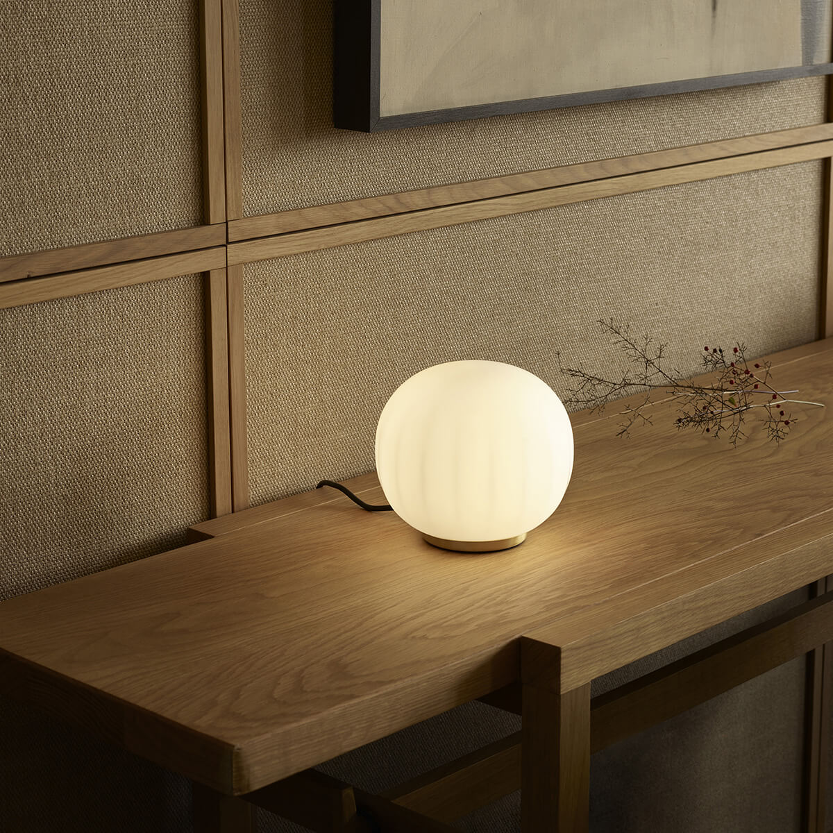 Ihr mundgeblasener Opalglasschirm mit sanft gerippter Oberfläche verleiht der Leuchte eine feine Textur, die nicht nur visuell, sondern auch haptisch überzeugt. Das diffus gestreute Licht sorgt für eine gleichmäßige, blendfreie Ausleuchtung und unterstreicht die ruhige Ausstrahlung der Lita. So entsteht ein harmonisches Lichtspiel, das Räume dezent und dennoch wirkungsvoll inszeniert.