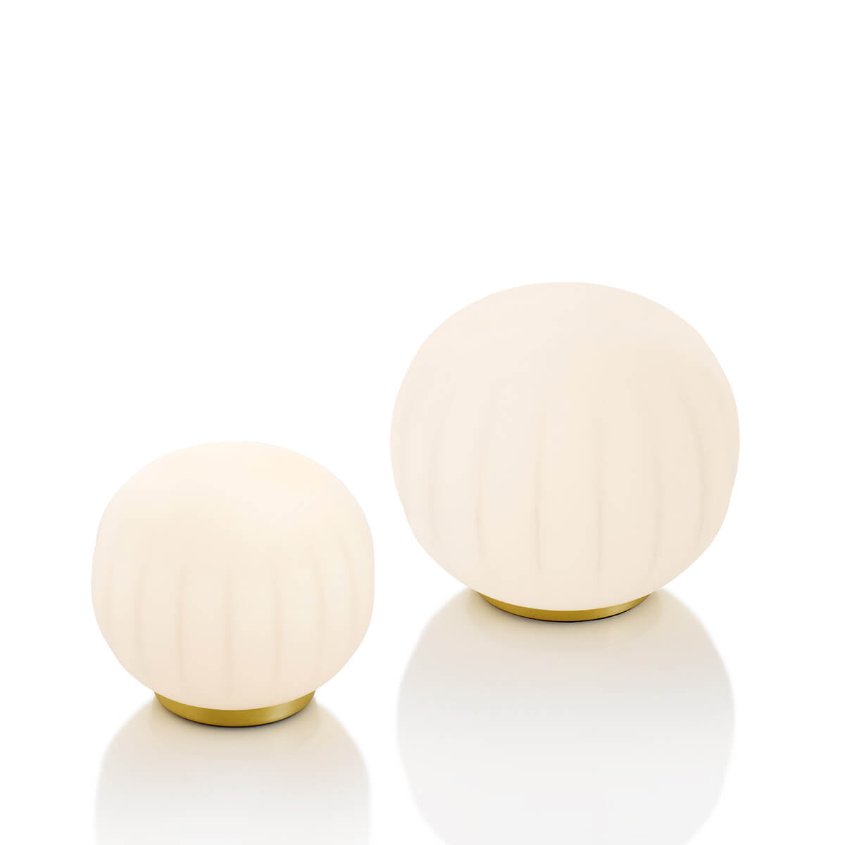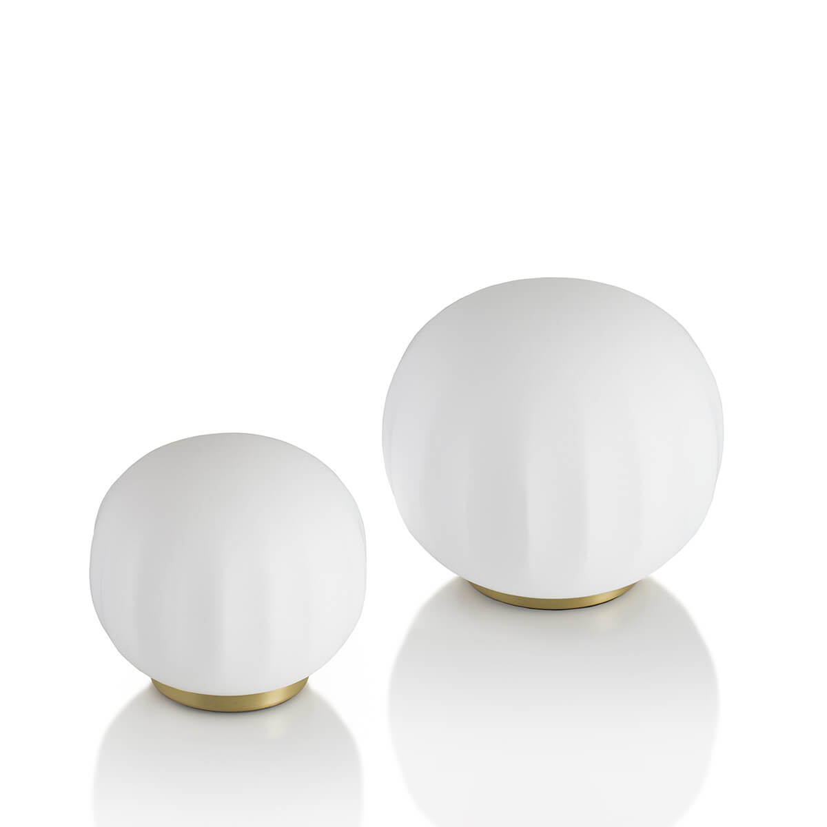 Der runde Sockel ist wahlweise in weiß lackiertem Aluminium oder mit edlem Messing-Finish erhältlich und ergänzt den zarten Schirm mit stilvoller Stabilität. Dank ihrer klaren Form fügt sich die Tischlampe mühelos in moderne wie klassische Interieurs ein – von privaten Wohnbereichen bis hin zu hochwertig eingerichteten Hotels, Lounges und Empfangsräumen.