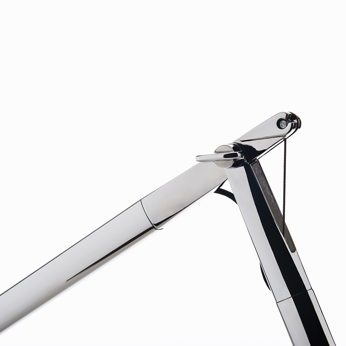 Tischfuß, Reflektor und Leuchtenarme der Luceplan Otto Watt Tavolo Tischleuchte sind aus Aluminium gefertigt und in weißer Lackierung, poliertem Aluminium oder schwarzer Tönung mit weicher Haptik zu erwerben.