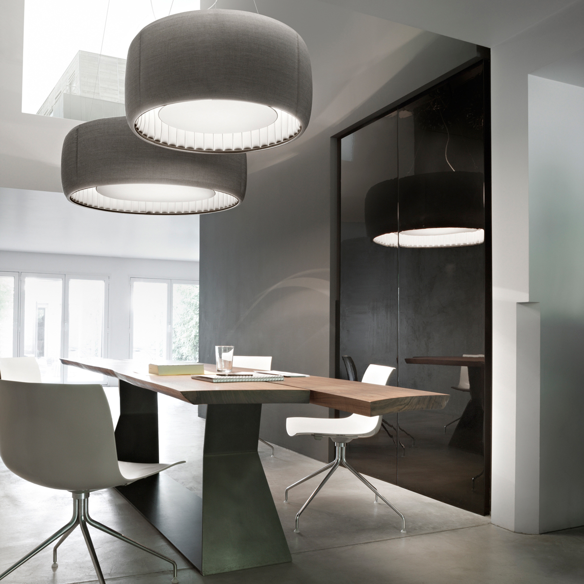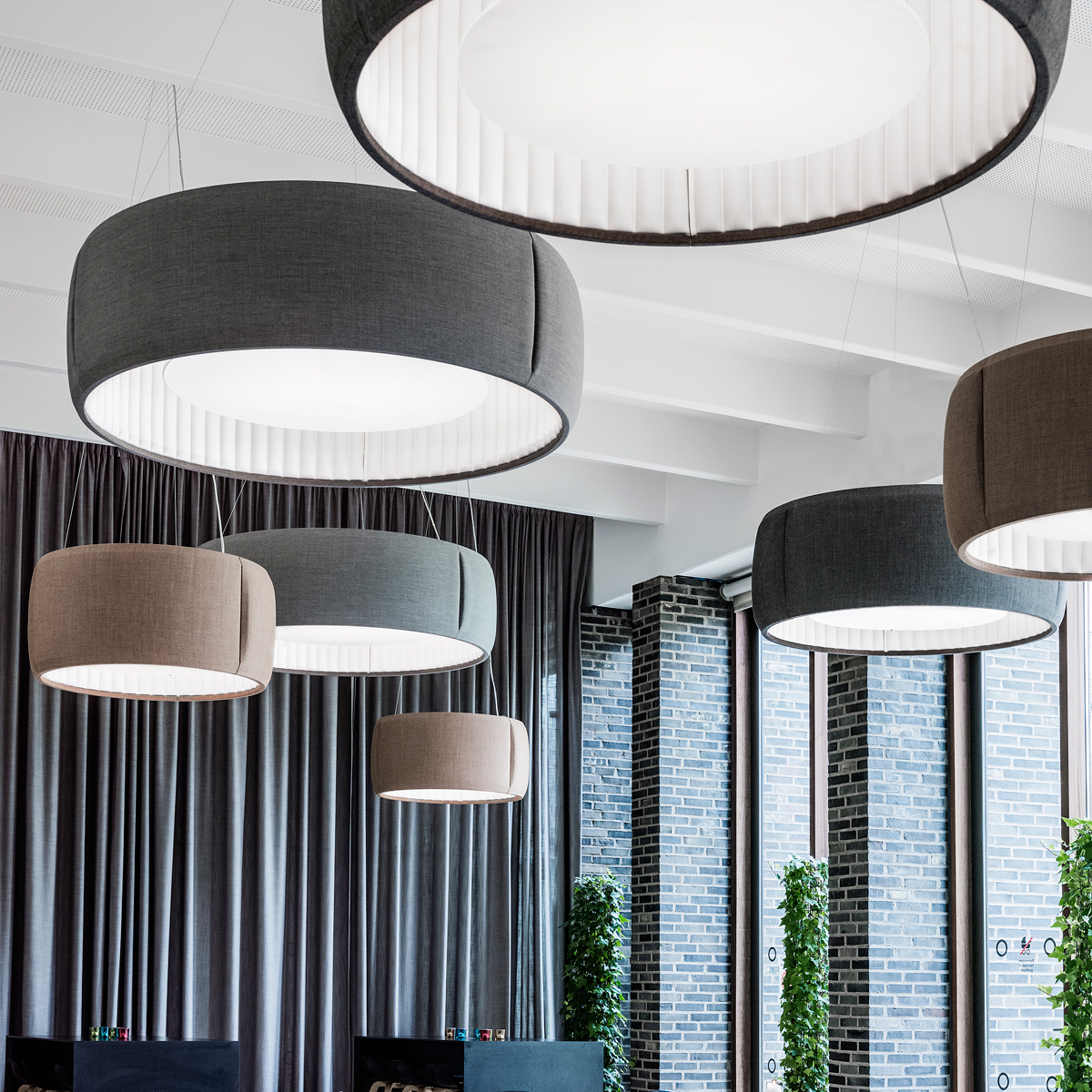 - Gerundete Akustiklampe in zeitloser, moderner Formensprache