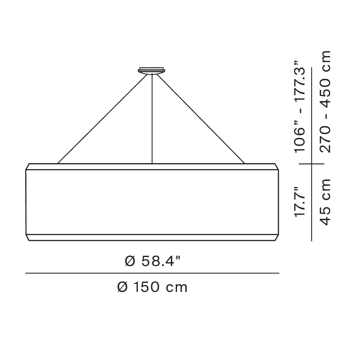 Um den direkten Lichtaustritt abzublenden, kann der Hängeleuchte eine Diffusorscheibe hinzugefügt werden (nicht im Lieferumfang enthalten). Diese ist als Zubehör erhältlich. Wünschen Sie die Pendellampe dezentral zu installieren, steht auf Anfrage ein zusätzliches Pendelset zur Verfügung. Dieses ermöglicht es, die Abhängeseile unabhängig vom Baldachin, in Parallelmontage, zu montieren.