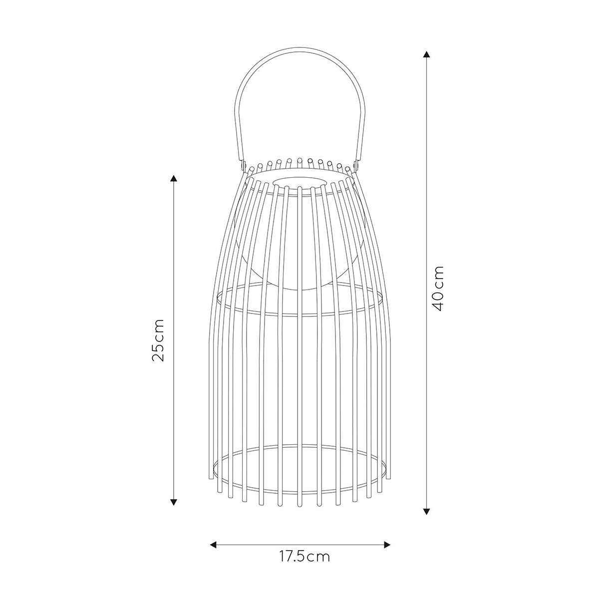 Mit der kabellosen Fjara von Lucide bringen Sie Licht ins Dunkel. Das angesagte Retrodesign, das einem Reifrock ähnelt, ist aus Metall gefertigt und in attraktiven Farben erhältlich. Ob stehend auf dem Tisch, mobil in der Hand oder hängend an einem Zweig – Fjara sorgt für Licht überall dort, wo Sie es brauchen.