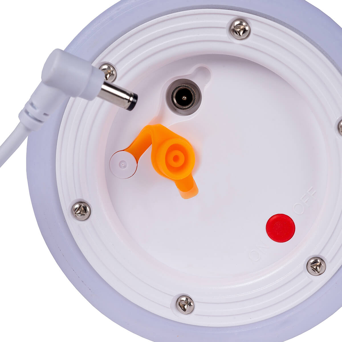 - Integrierter Li-Ion-Akku (Leuchtdauer: ca. 12 h bei höchster Dimmstufe)