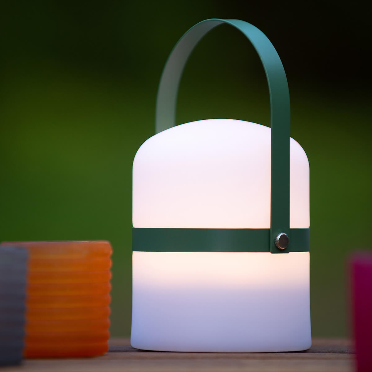 - Kabellose, tragbare Tischlampe mit farbigem Kunststoffhenkel