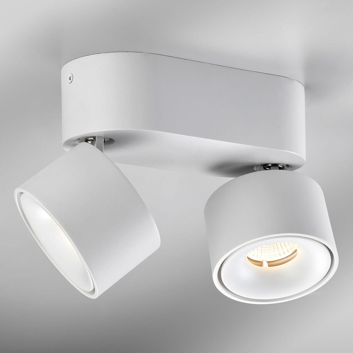 - Vielseitig einsetzbarer, 2-flammiger Aufbaustrahler in modernem Design