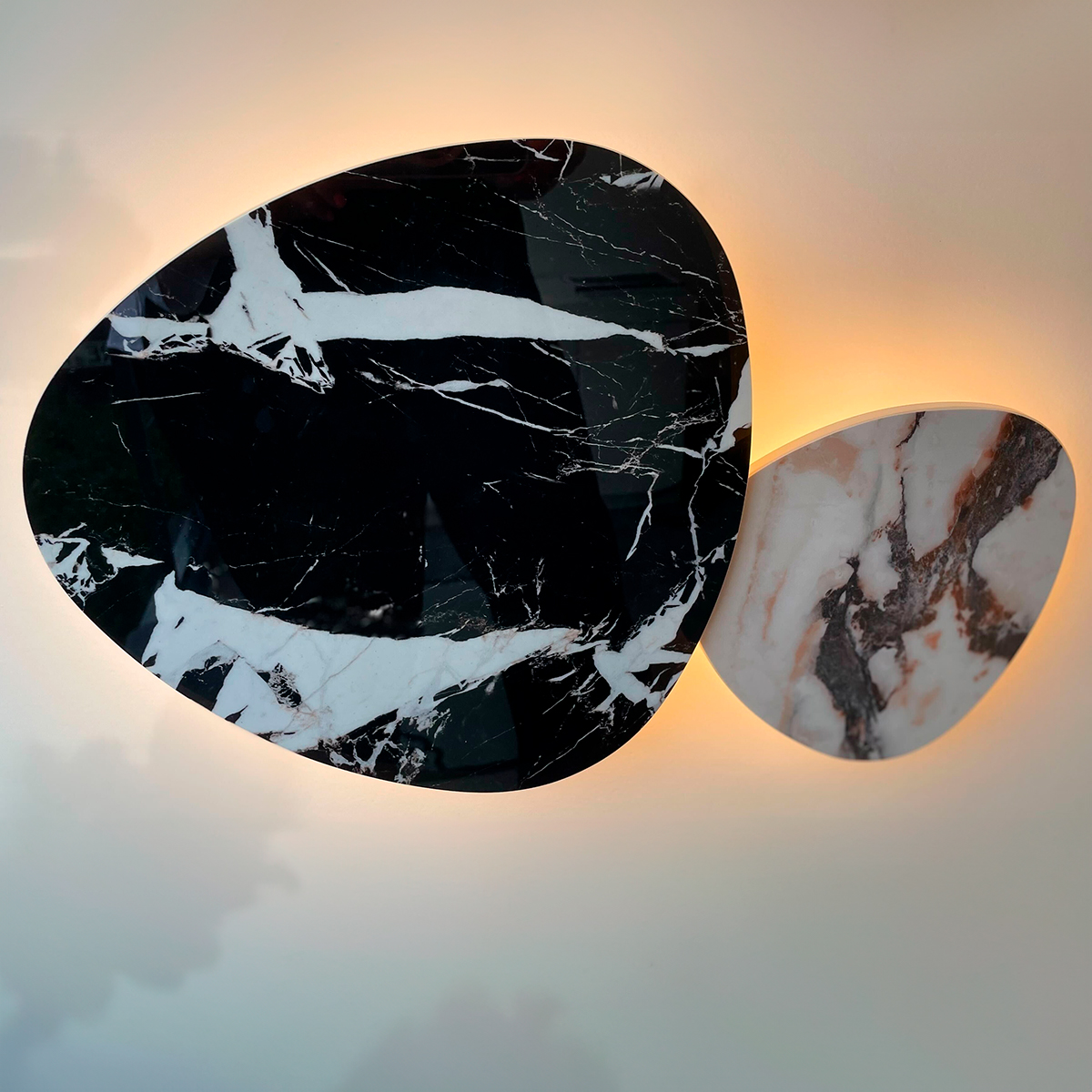 Verleihen Sie Ihren Wohnräumen mit der Cameo LED Wandleuchte von LupiaLicht zeitlose Eleganz und moderne Raffinesse. Die Wandleuchte besticht durch ihr minimalistisches Design aus veredeltem Aluminium und einer glänzenden, marmorierten Oberfläche.