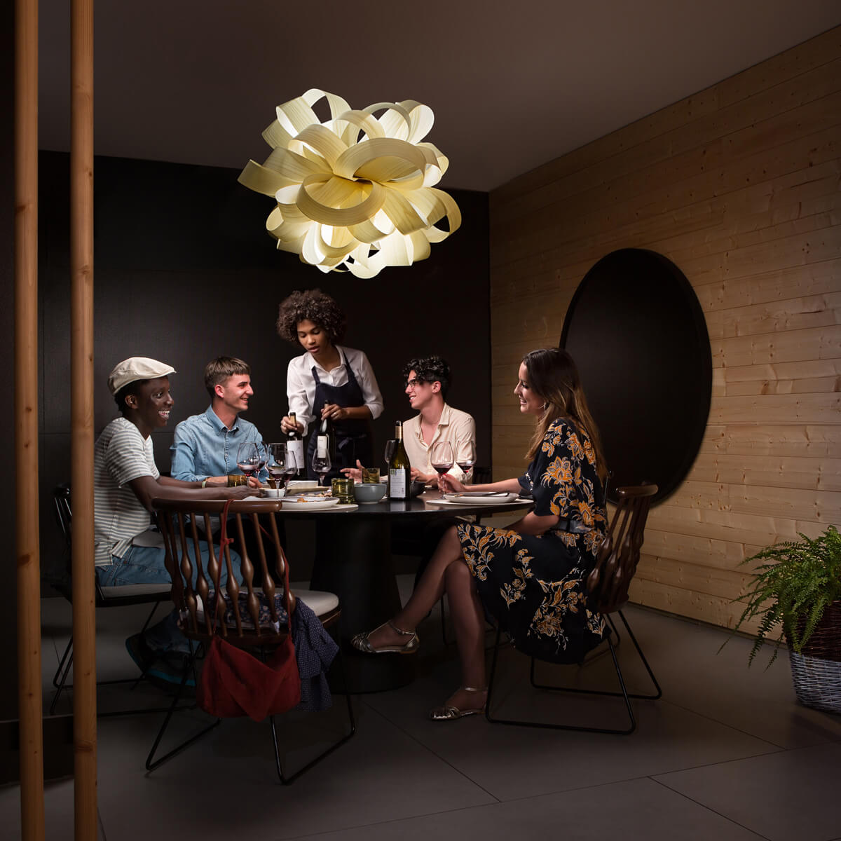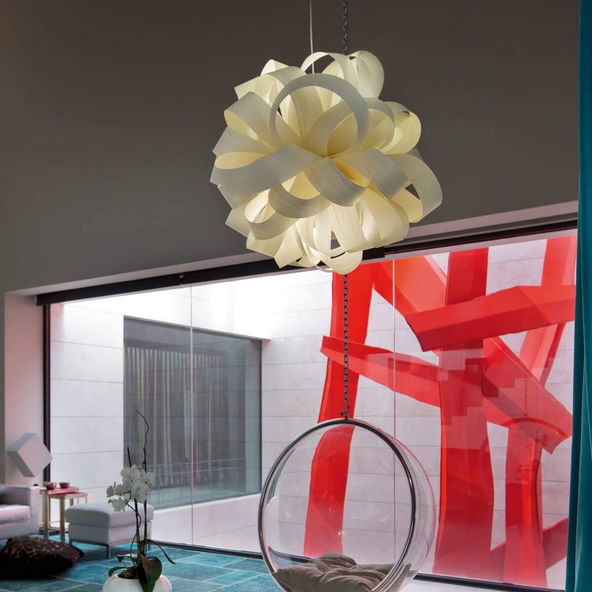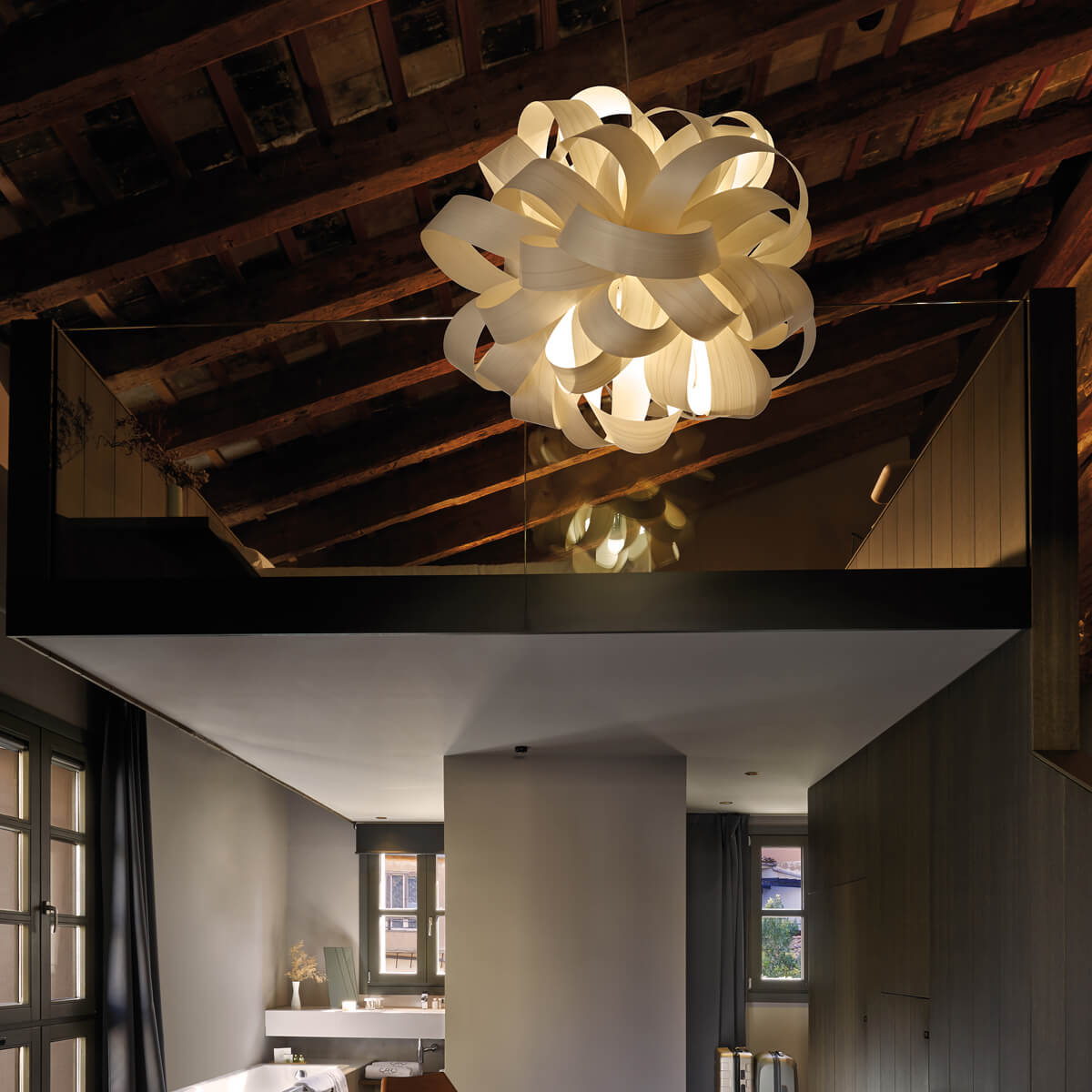 Die Agatha Ball setzt eindrucksvolle Akzente über dem Esstisch, Tresen oder frei im Raum schwebend, in der Küche und im Wohnzimmer ebenso wie in Hotellobbys, Lounges und Gastronomiebereichen. Ihre organische Form und das warme, lebendige Licht schaffen ein Ambiente von Natürlichkeit, Wärme und Designbewusstsein – perfekt für anspruchsvolle Innenräume mit Persönlichkeit.