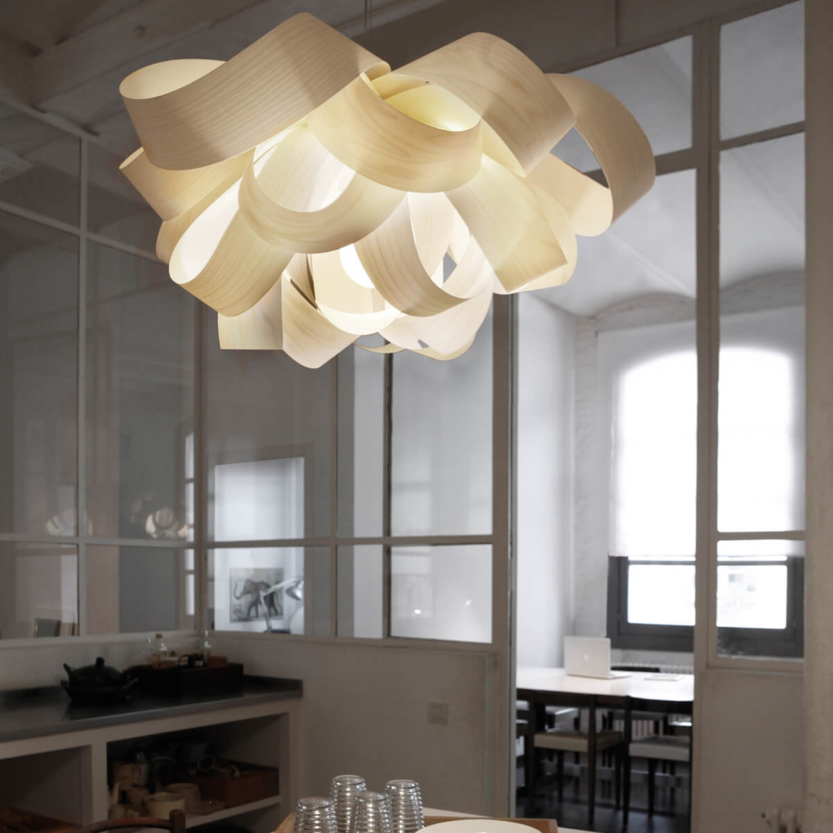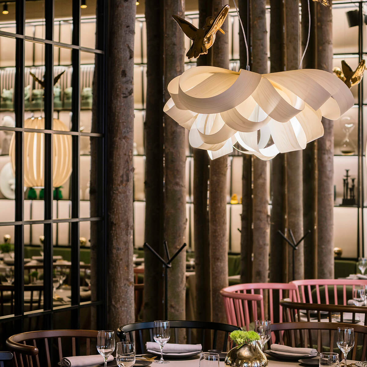 Die LZF Lamps Agatha Small sorgt für einen vornehmlich direkten Lichtaustritt, der zugleich atmosphärisch und funktional ist. Besonders effektvoll wirkt sie über einem runden Tisch oder im Cluster arrangiert über langen Tafeln, Theken und modernen Bar-Bereichen. Erhältlich ist die Designerleuchte in vielen edlen Furnierfarben, darunter natürliche Buche, sanftes Elfenbeinweiß, leuchtendes Gelb und luftiges Pale Rose und Sea Blue.