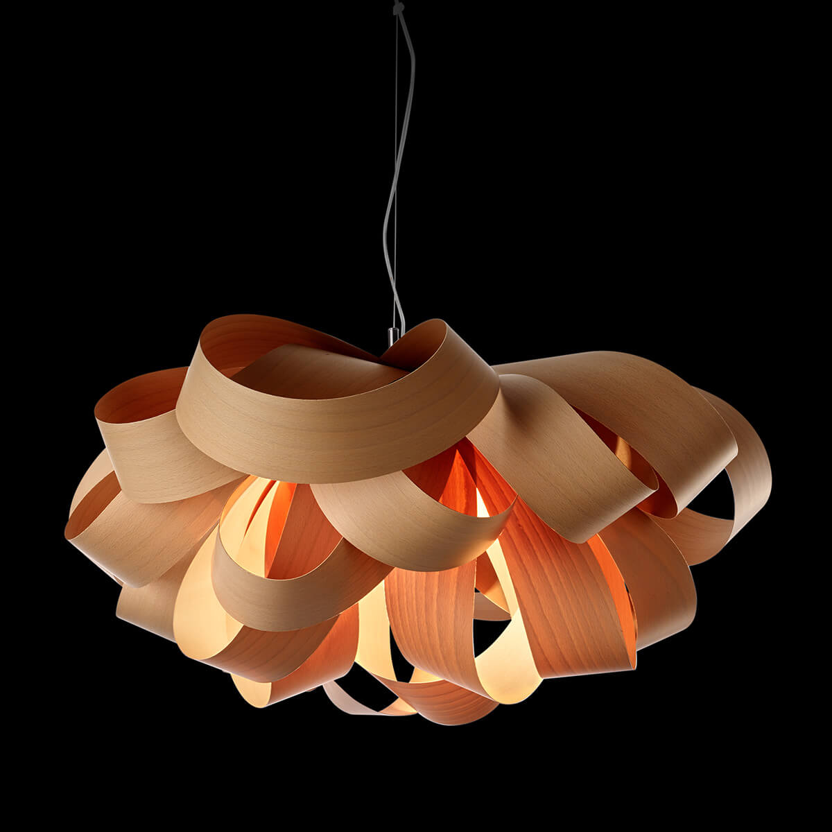 | Material/surface: | Echtholzfurnier natur, Baldachin: Nickel gebürstet, Stahlseil, Zuleitung: transparent |