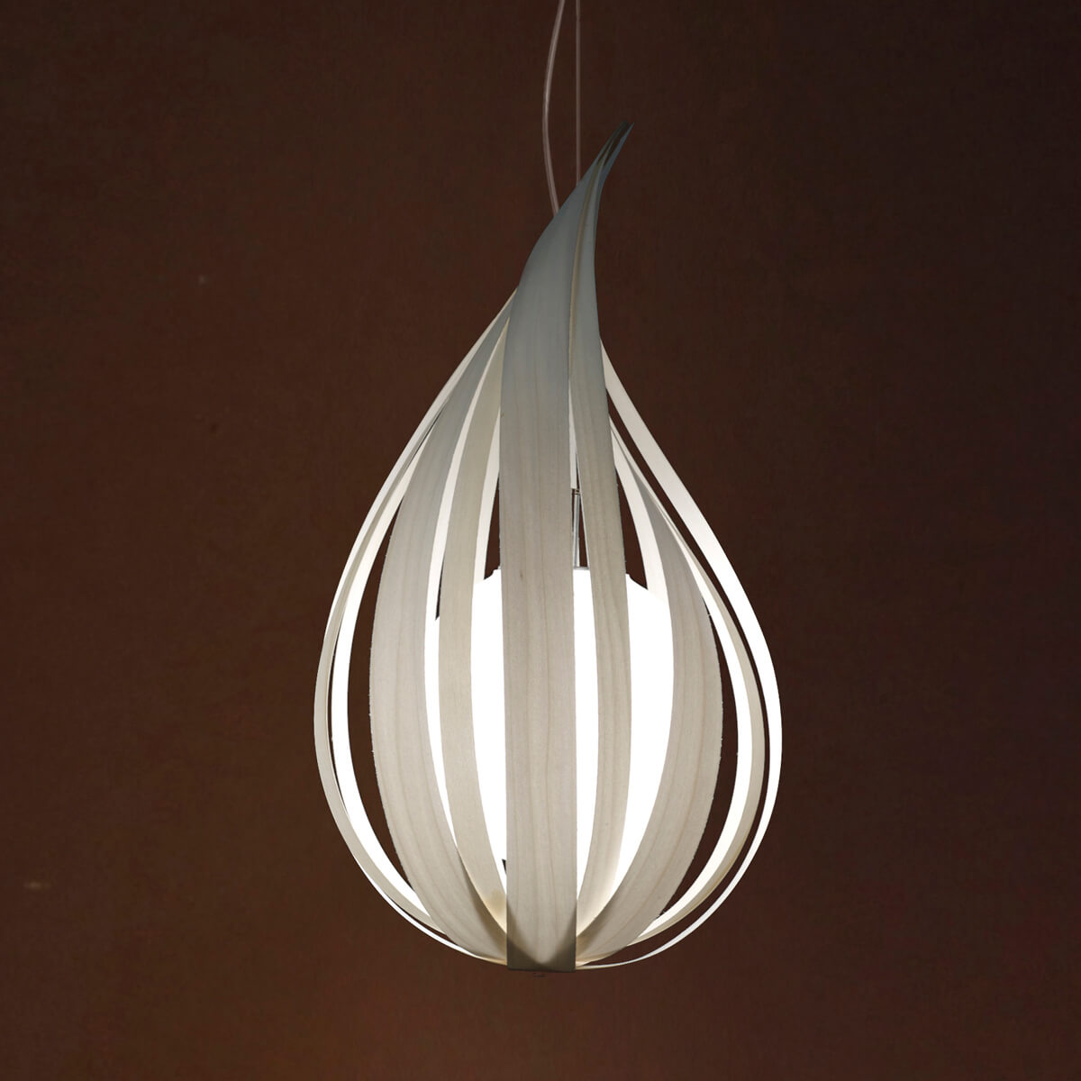 Die LZF Raindrop Medium bringt die Schönheit eines fallenden Regentropfens in Ihre Räume – eingefangen in einem kunstvoll geschwungenen Design aus Echtholzfurnier. Entworfen vom Javier Herrero Studio und mit höchster Sorgfalt in Handarbeit in Spanien gefertigt, überzeugt die Pendellampe durch ihre harmonische Silhouette, die sowohl einzeln als auch im Ensemble eine elegante Leichtigkeit ausstrahlt – ideal für Esstische, Theken, Wohnbereiche, Galerien oder stilvolle Gastronomiekonzepte.