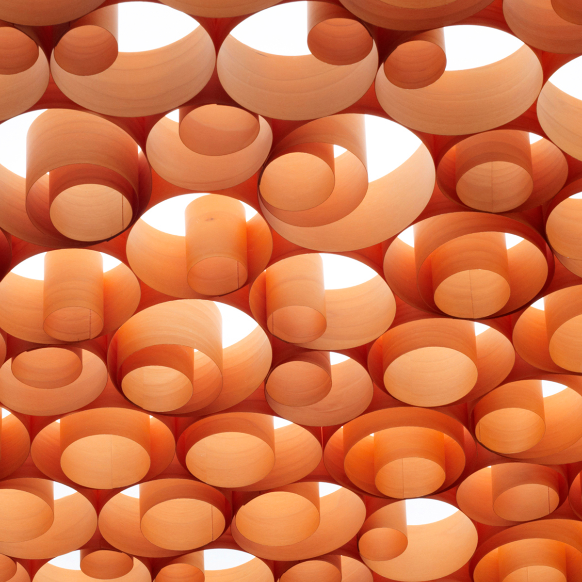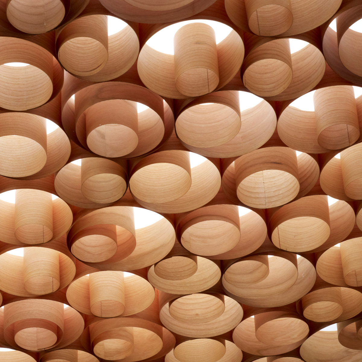 - In Handarbeit hergestellter Innenteil aus FSC-zertifiziertem, lichtdurchlässigem Echtholzfurnier