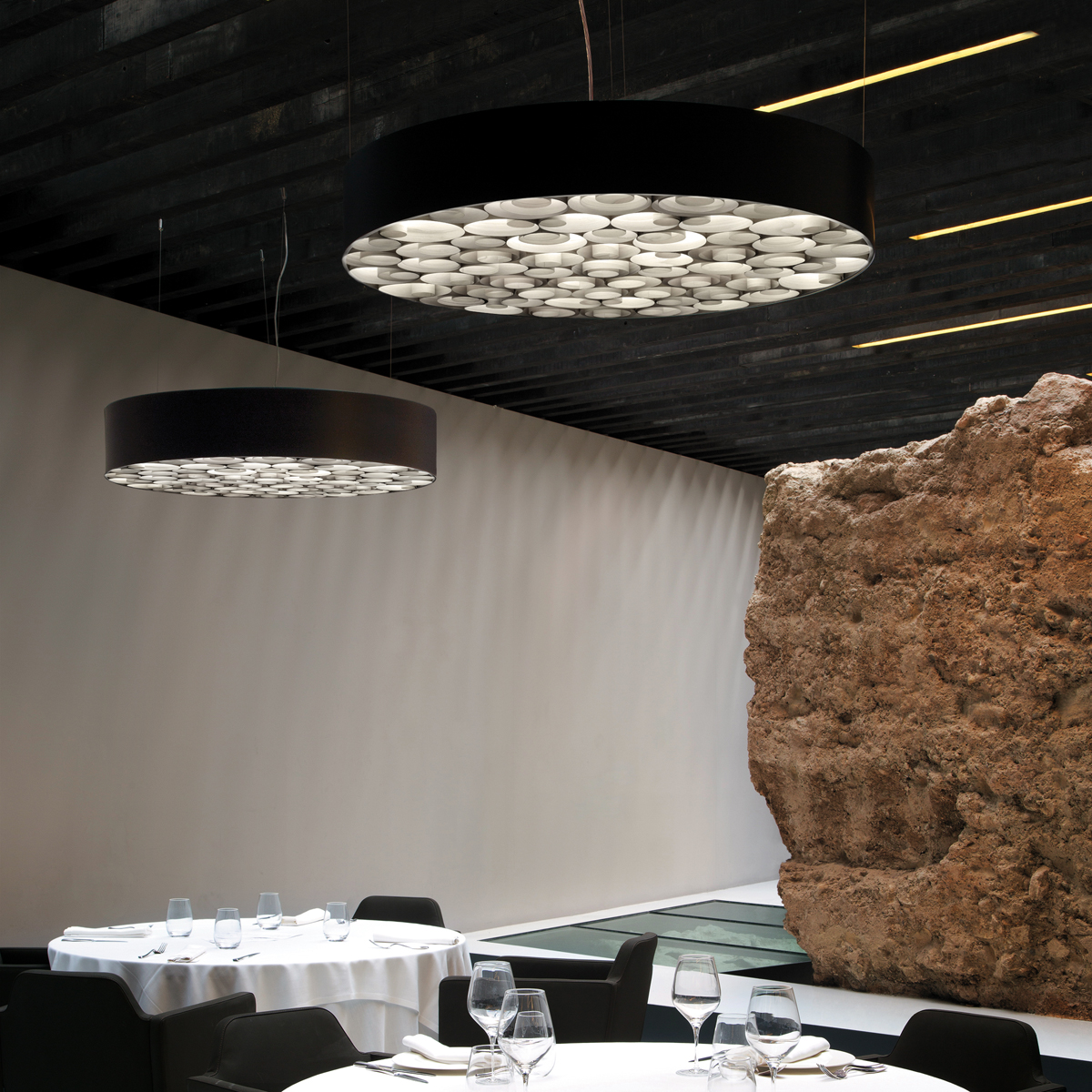 - Pendelleuchte mit äußerem Schirm aus schwarzem Acryl