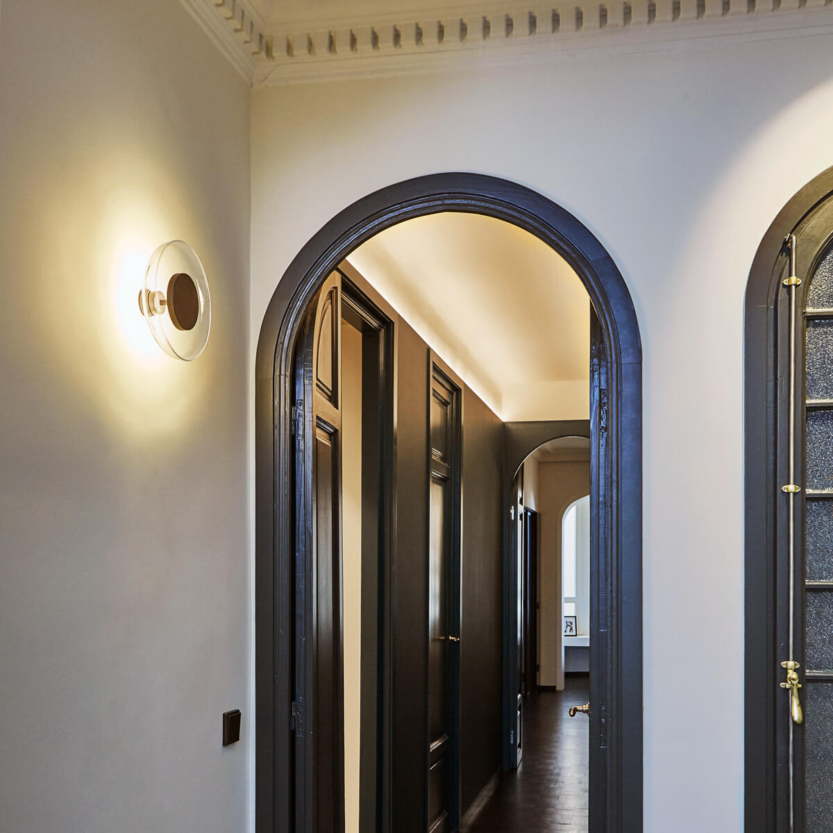 Viellseitig und elegant: Die Aura Plus kann sowohl als Wand- als auch Deckenlampe installiert werden, wodurch sie sich perfekt für unterschiedliche Beleuchtungsszenarien eignet. Dies macht sie nicht nur zu einer funktionellen Lichtquelle, sondern auch zu einem Statement-Stück, das Design und Funktionalität in Einklang bringt.