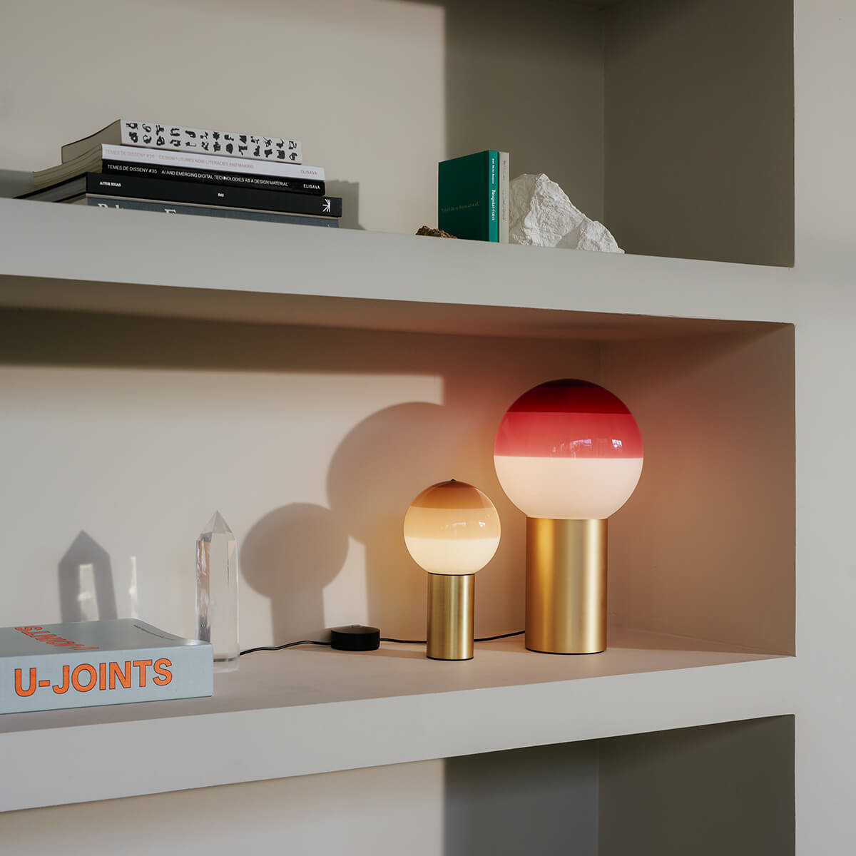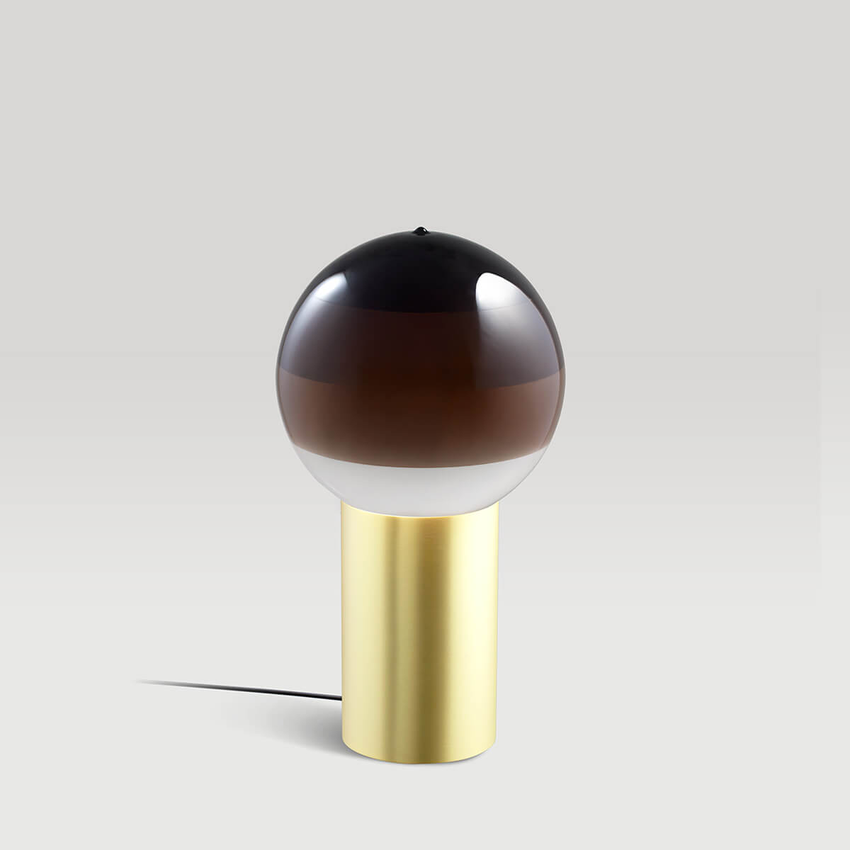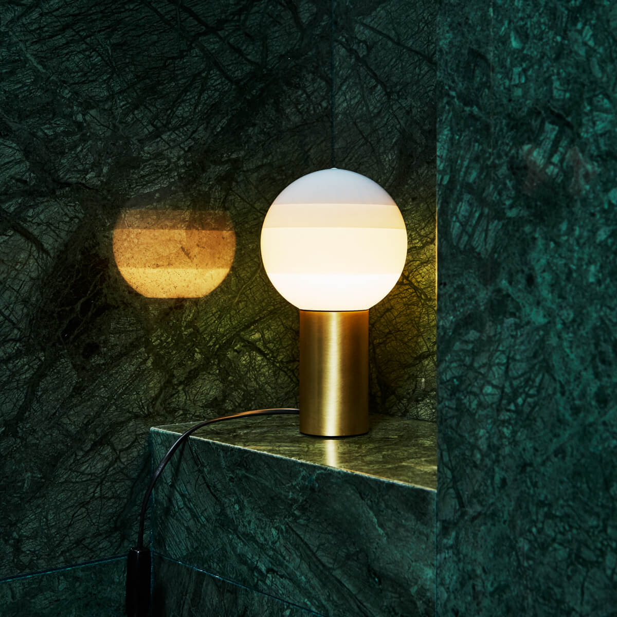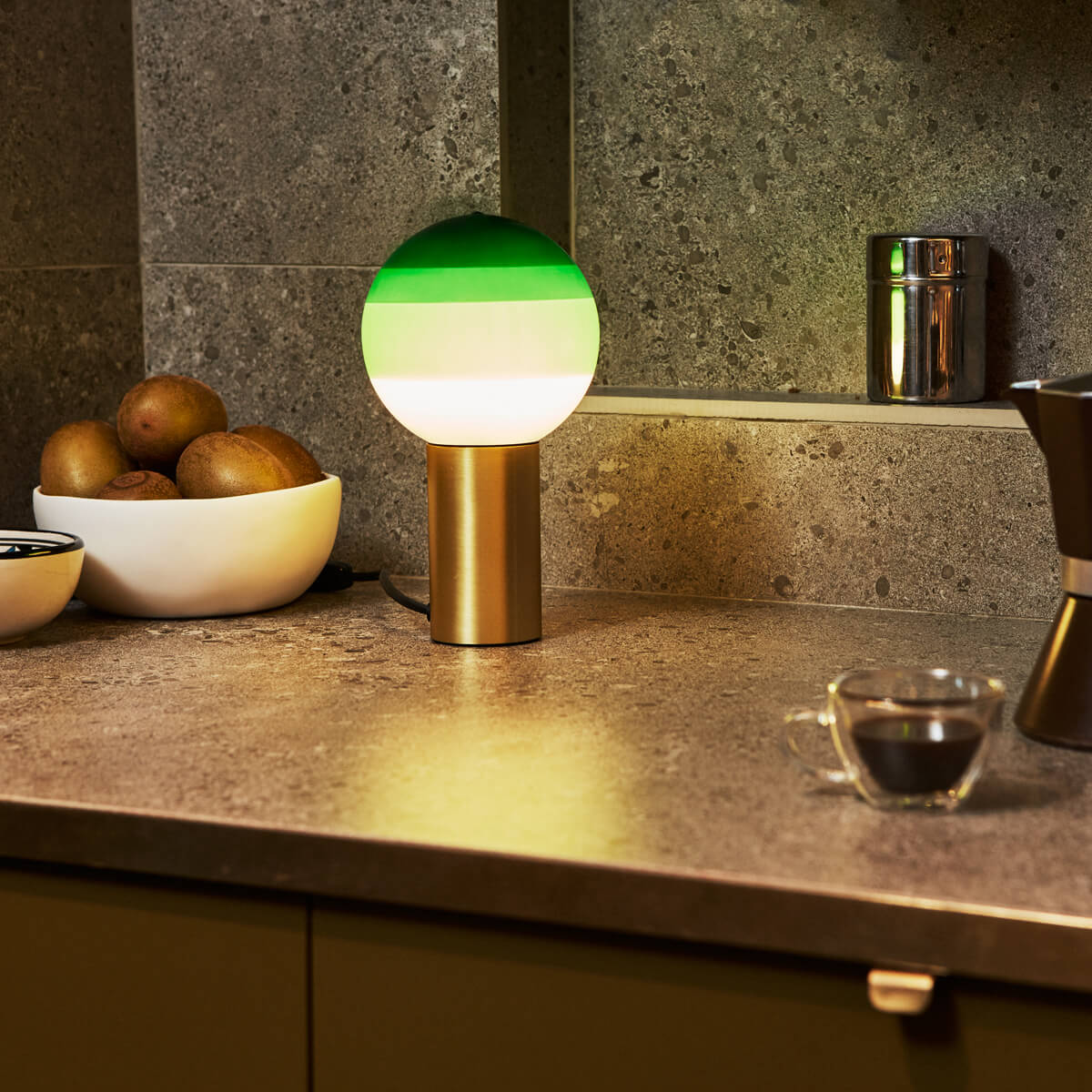 Erhältlich ist die LED-Tischleuchte in sechs Farbnuancen, die die Ausdruckskraft und Lichtfarbe der Dipping Light variieren: Leuchtendes Bernstein und Grün wecken Assoziationen an die Farbpalette der 1970er-Jahre, zartes Creme und Bordeaux verleiht den Lampen eine elegante, sanfte Note. Zeitloser gestaltet es sich mit der Version in leicht abgetöntem Weiß, das einen schönen Kontrast zum geschmackvollen Messingfuß bildet.