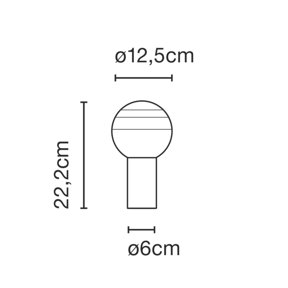 Der Blickpunkt des Designs ist der farbige Leuchtenschirm: eine weiß glänzende Kugel aus geblasenem Glas, die von Farbschichten unterschiedlicher Tonalität überzogen ist. Das ausstrahlende Licht wird durch die vielschichtigen Farbtöne gefiltert, wodurch je nach Farbintensität eine sanfte, farbige Beleuchtung entsteht.