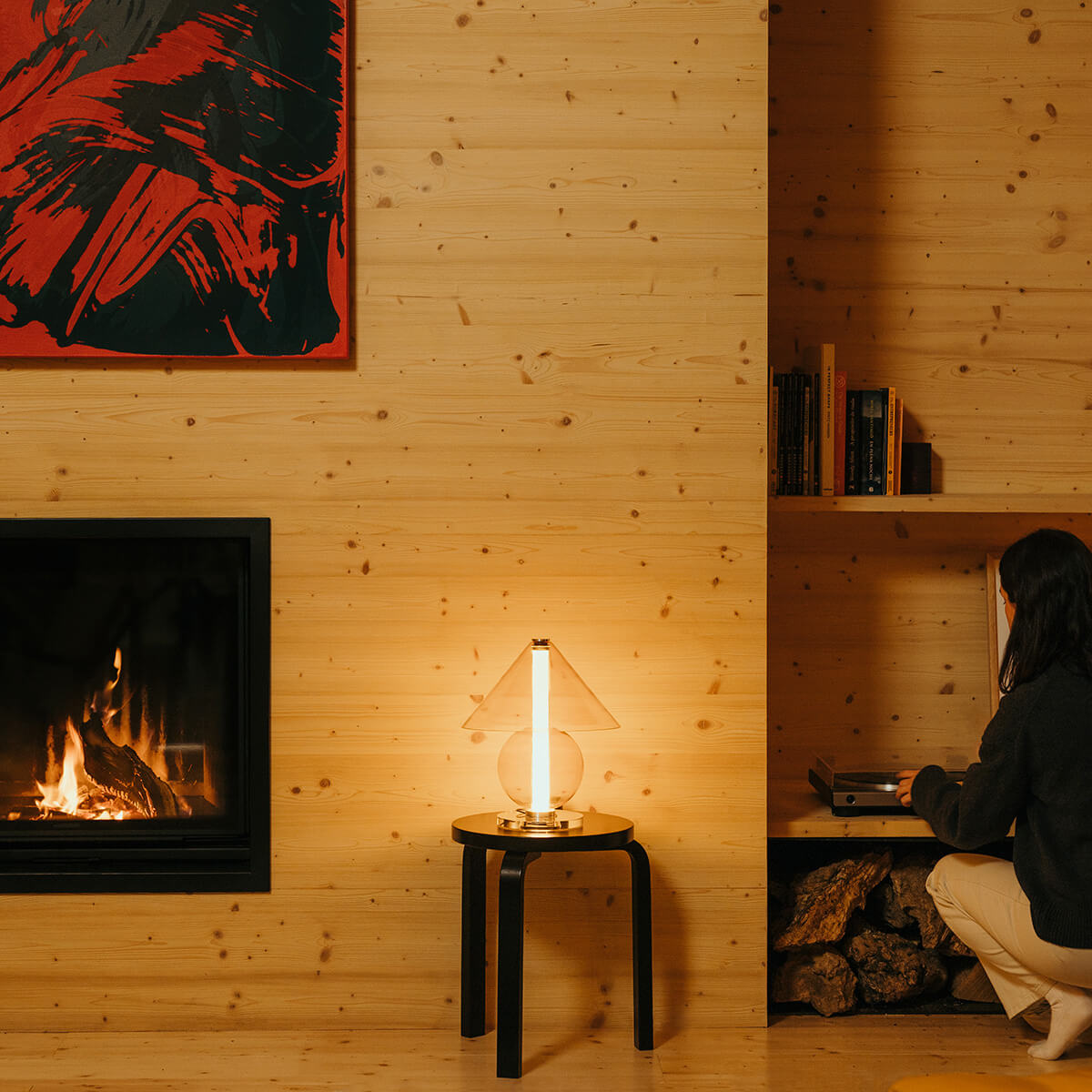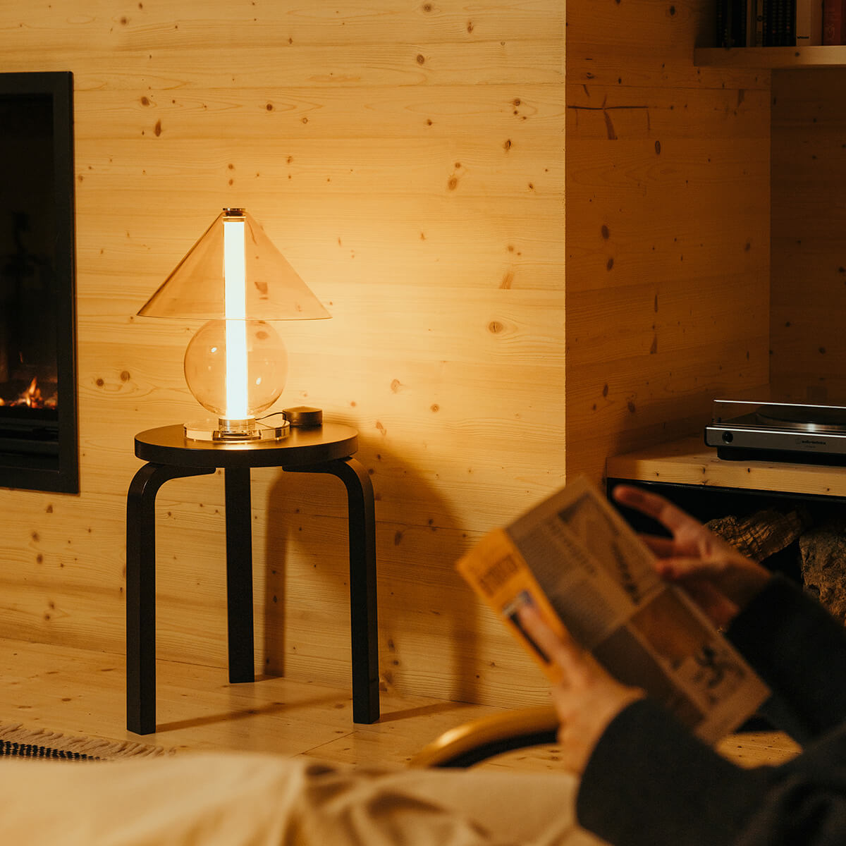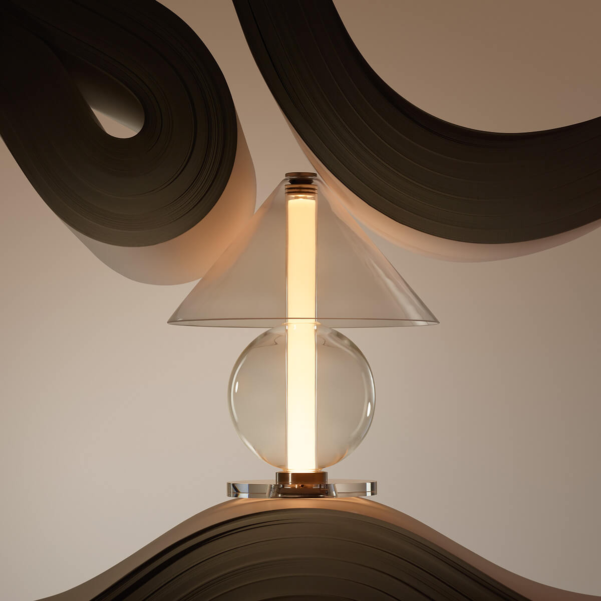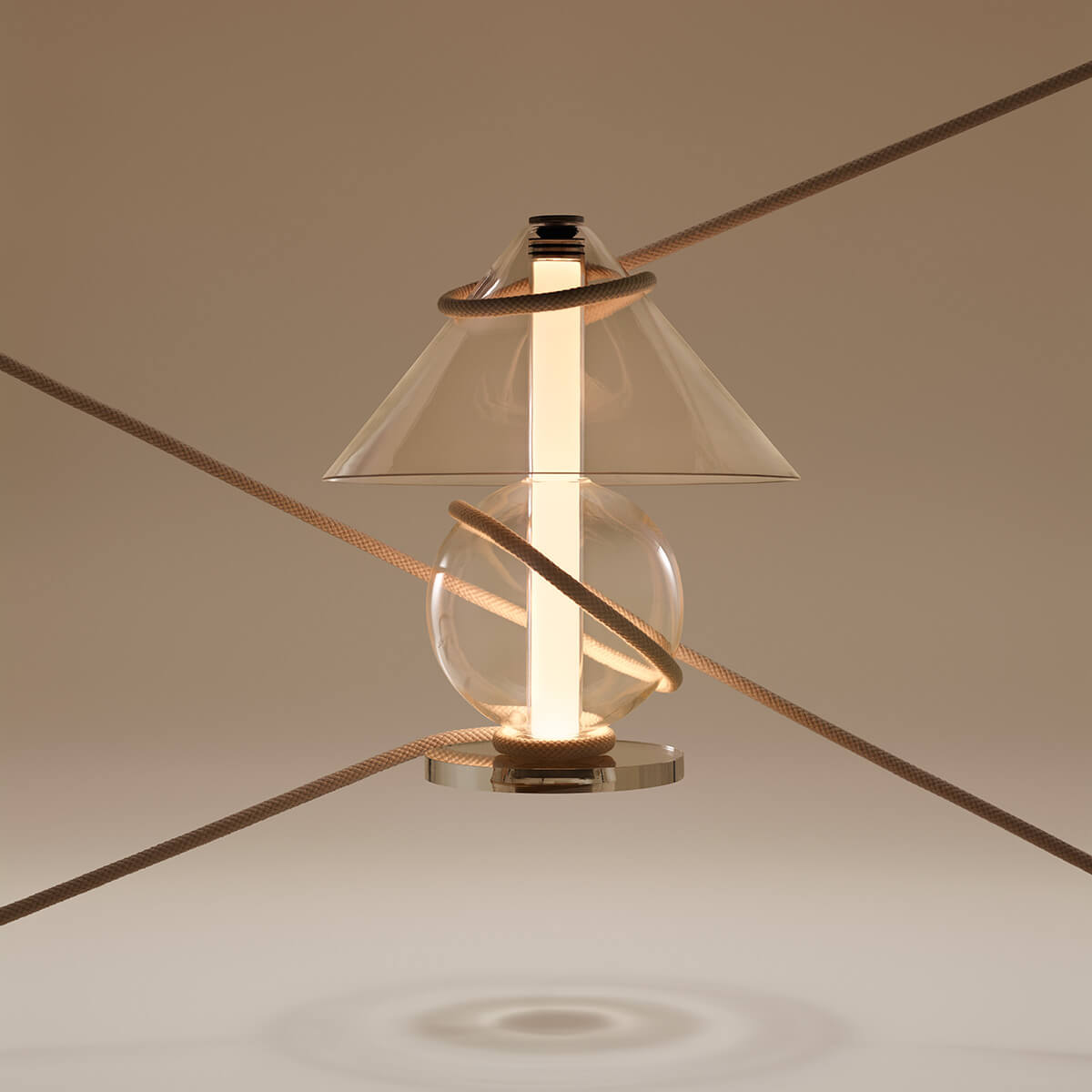 Die Fragile besticht durch ihre Transparenz und Leichtigkeit, die das Licht zu einem integralen Bestandteil des Designs machen. Das klare oder bernsteinfarbene Glas offenbart nicht nur die Lichtquelle, sondern verleiht der Lampe eine schwebende Eleganz, die mühelos mit ihrer Umgebung verschmilzt. Der zylindrische Schirm streut das Licht sanft und diffus, wodurch eine stimmungsvolle Lichtatmosphäre entsteht – ideal für Beistelltische, Sideboards oder als Akzentbeleuchtung im Schlafbereich.