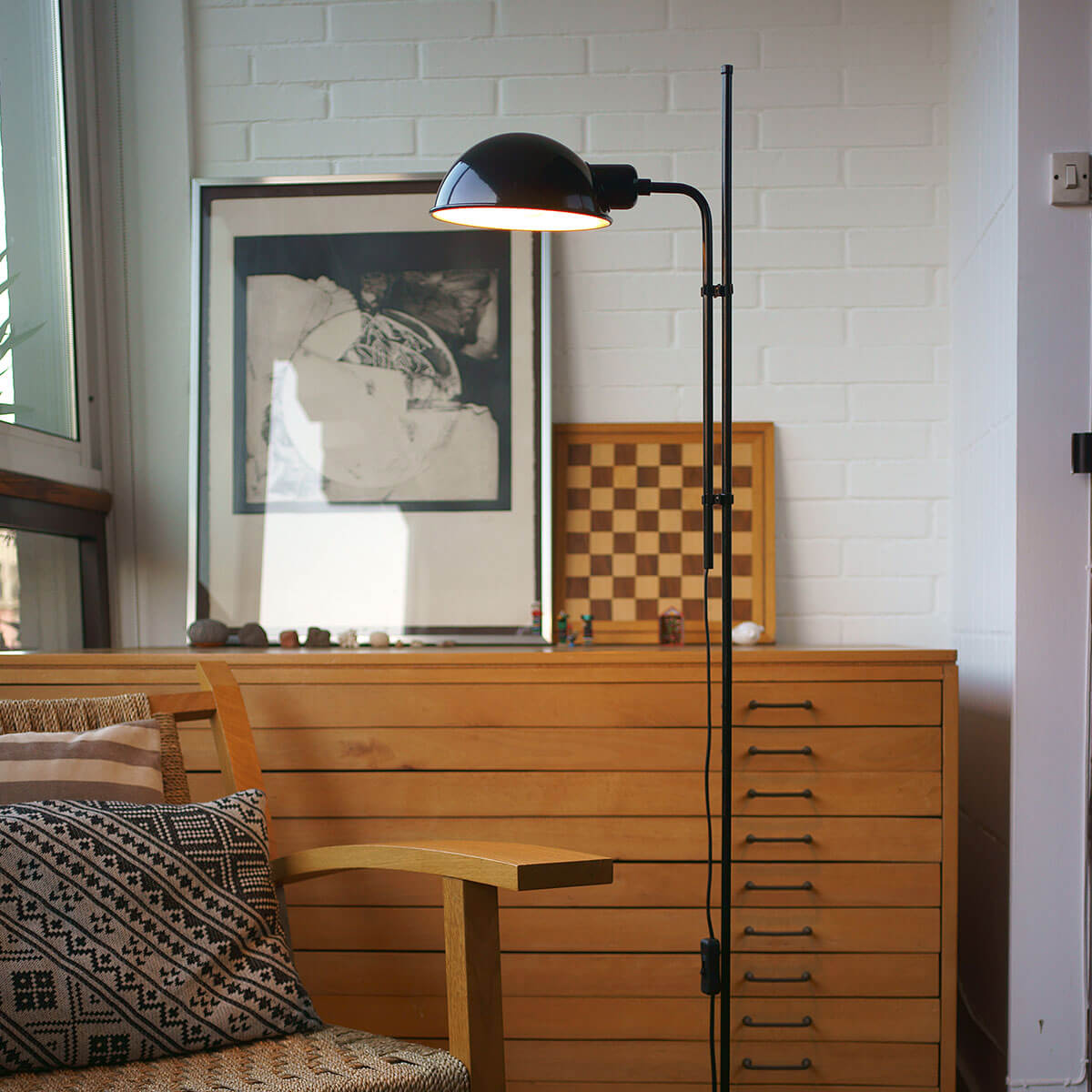 Ein weiteres Plus der Marset Funiculí besteht in der Höhenverstellbarkeit des Lampenschirms: Dank der am Schaft befindlichen Klammern kann er mal näher zu Ihnen herab- oder heraufgeschoben werden. Dies macht die Stehlampe zu einem perfekten Begleiter im Wohnbereich: Nutzen Sie die Lampe als Leseleuchte neben Sofa und Couch, als Lichtquelle neben dem Bett oder als dekoratives Raumlicht im Wohnzimmer.